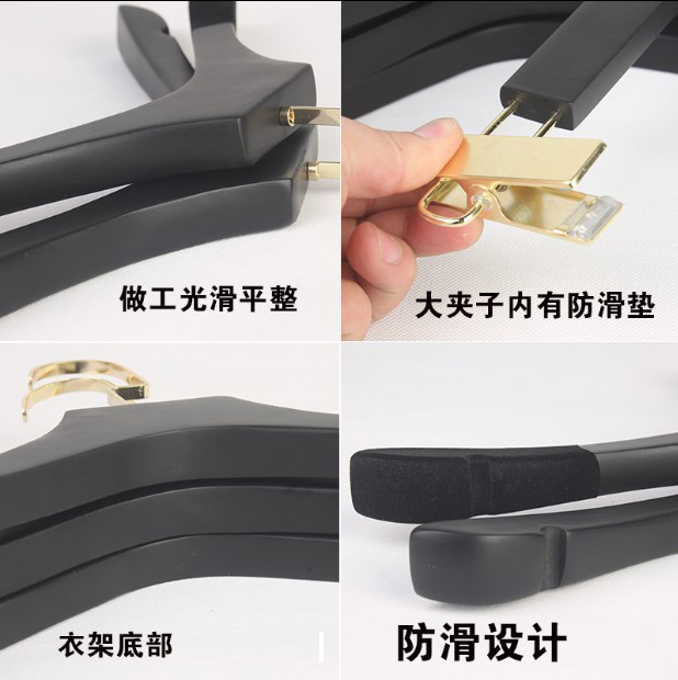 黑色实木防滑衣架酒店服装店男女木质衣服架无痕植绒衣撑裤夹定制