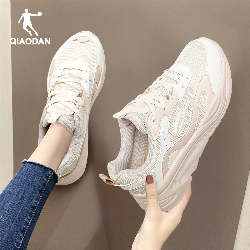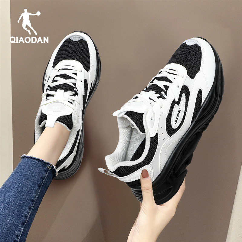 乔丹运动鞋女鞋2026秋冬季新款老爹鞋官方正品黑色透气网面跑步鞋