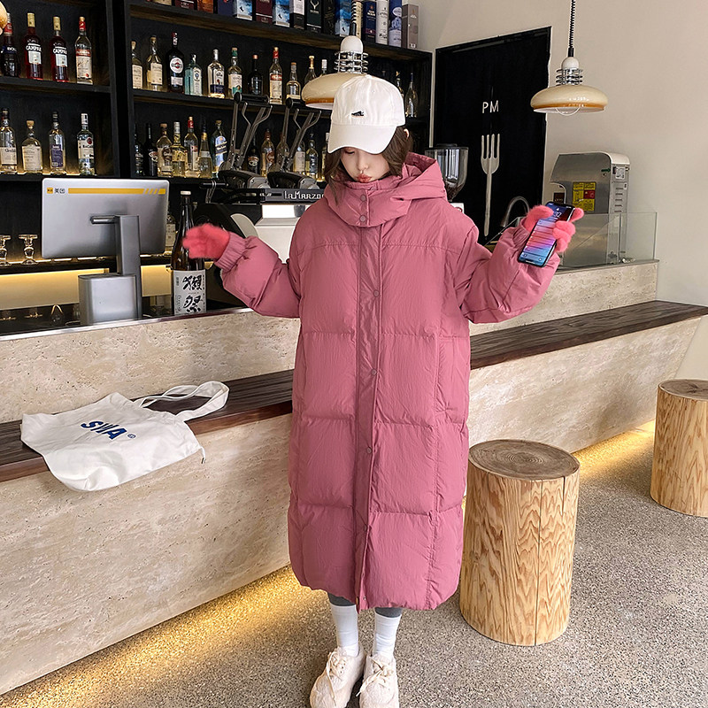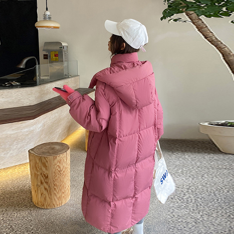 冬装新款连帽宽松洋气棉袄大码加厚中长款过膝羽绒棉衣女棉服外套