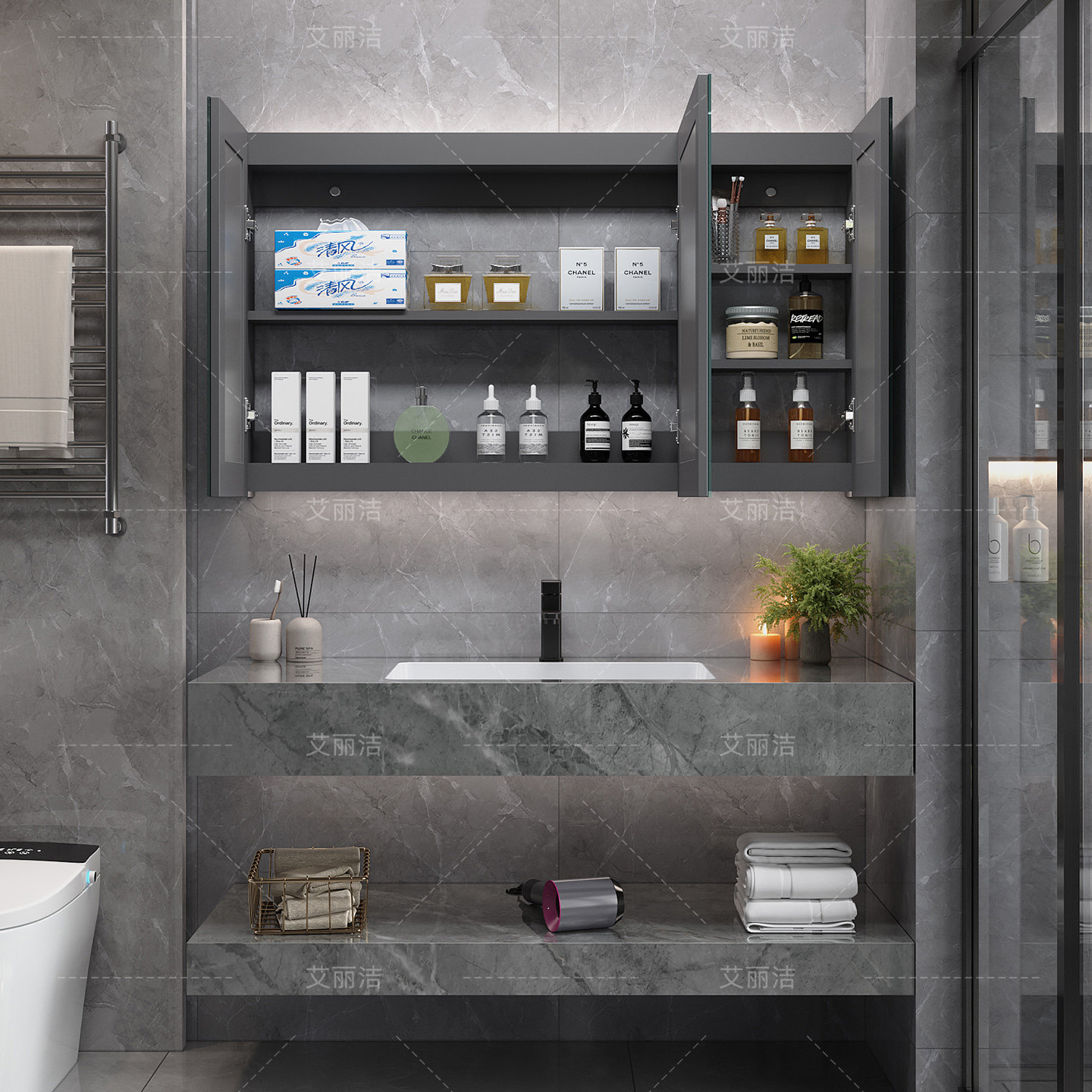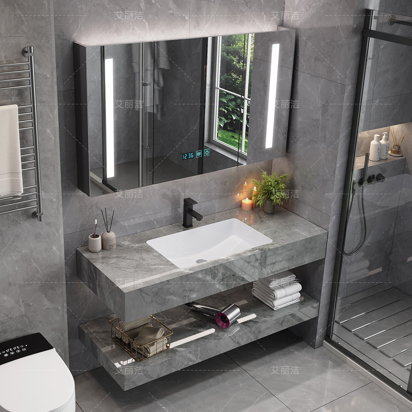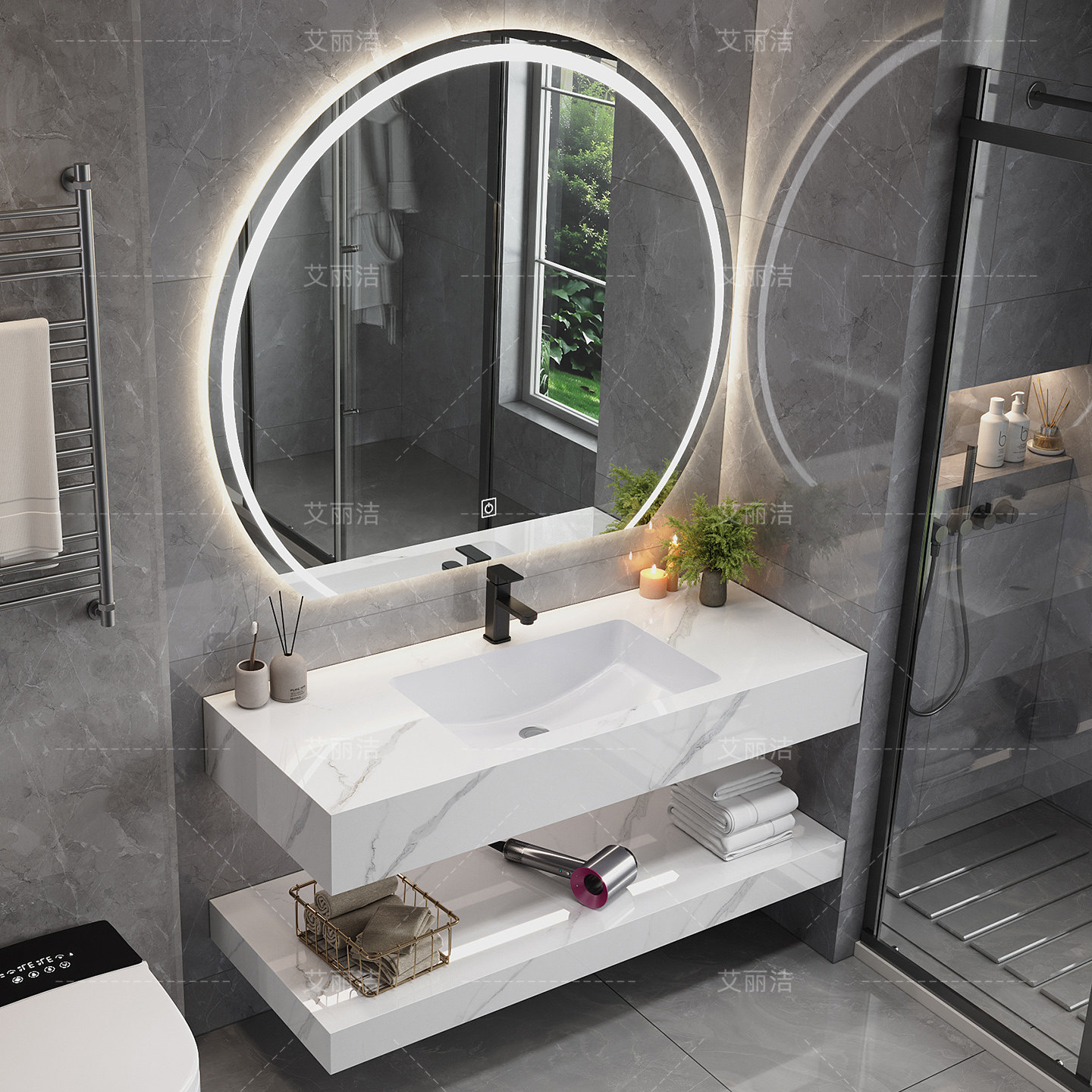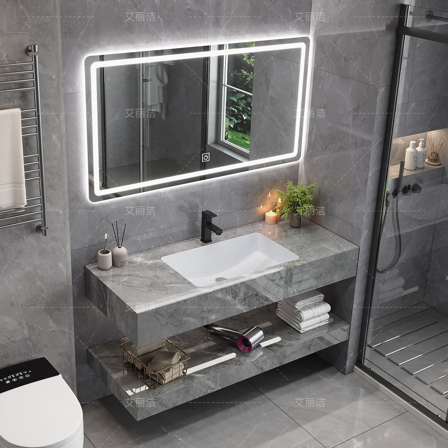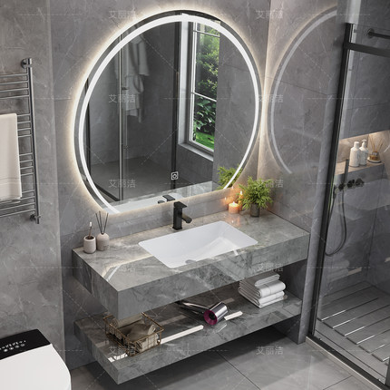 轻奢酒店岩板陶瓷无缝一体盆浴室柜组合洗手脸盆卫浴卫生间洗漱台