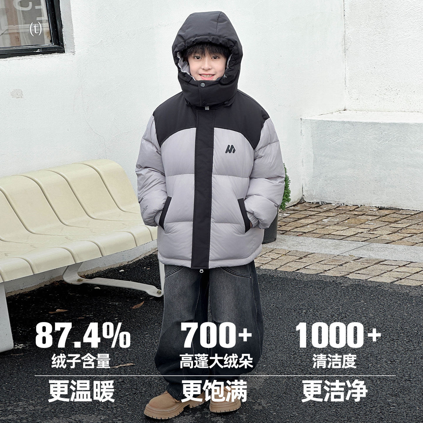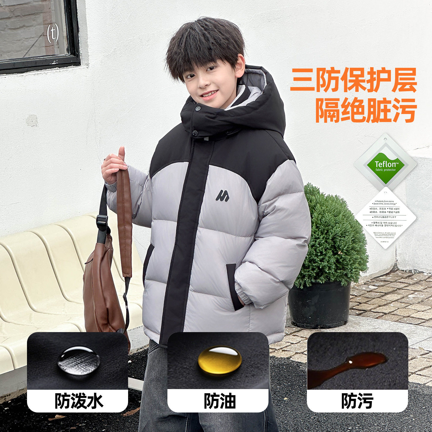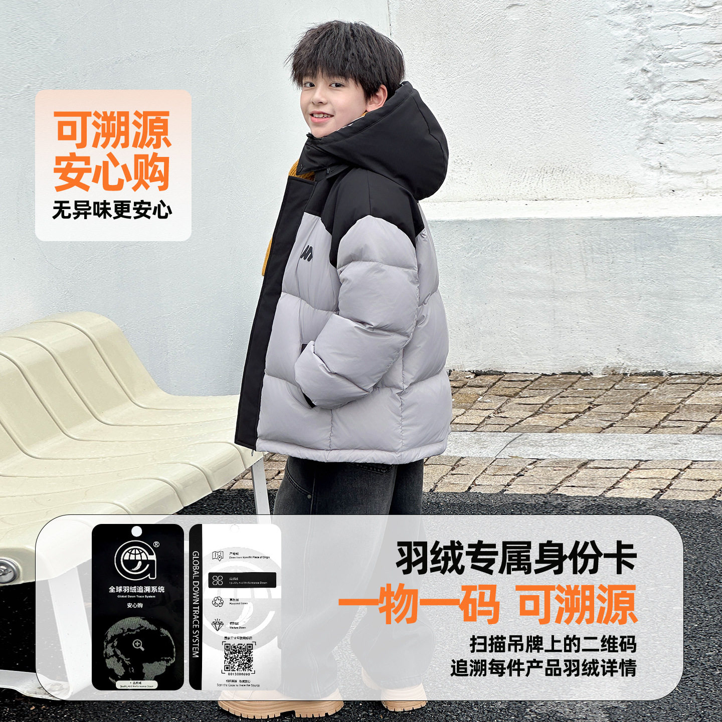 可溯源90白鸭绒三防男童羽绒服 2025冬季新款儿童拼接羽绒外套