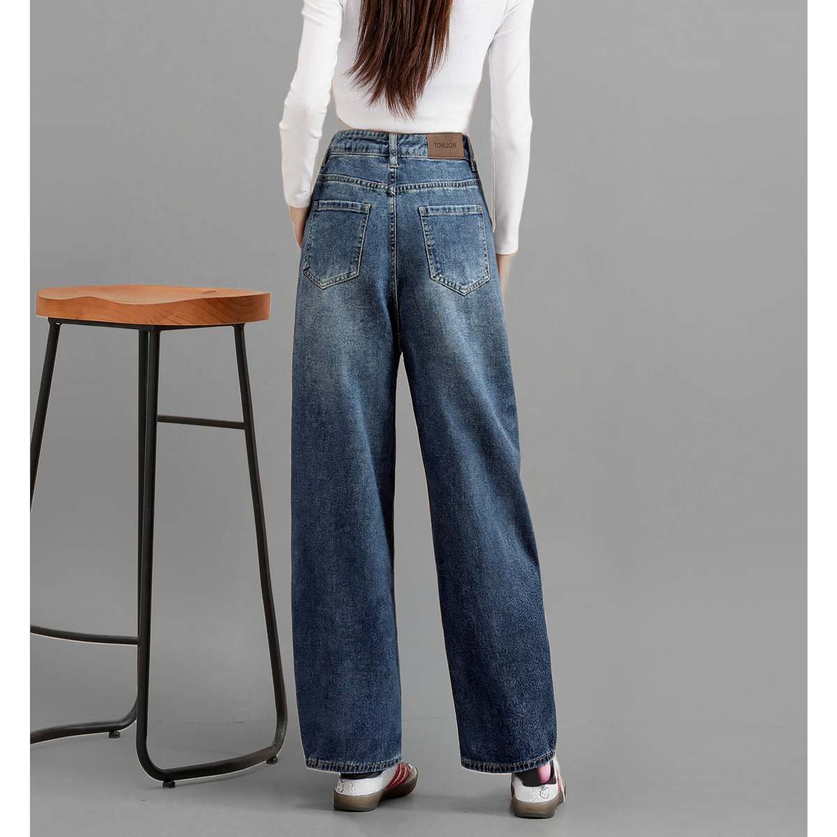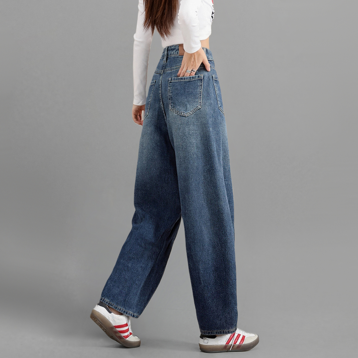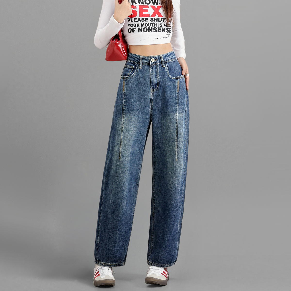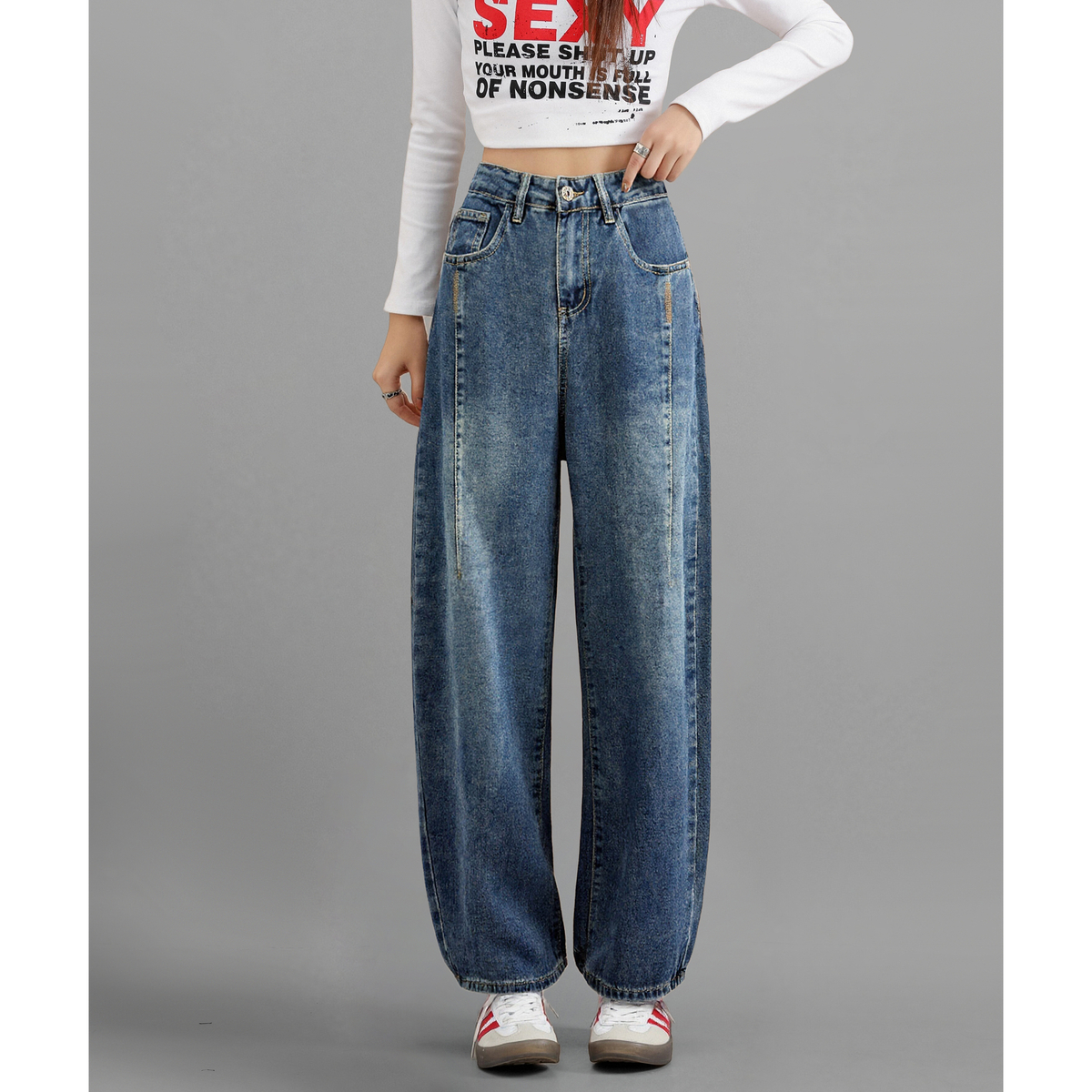 唐狮2025冬季女加绒宽松弯刀牛仔裤显瘦流行百搭显腿直长裤