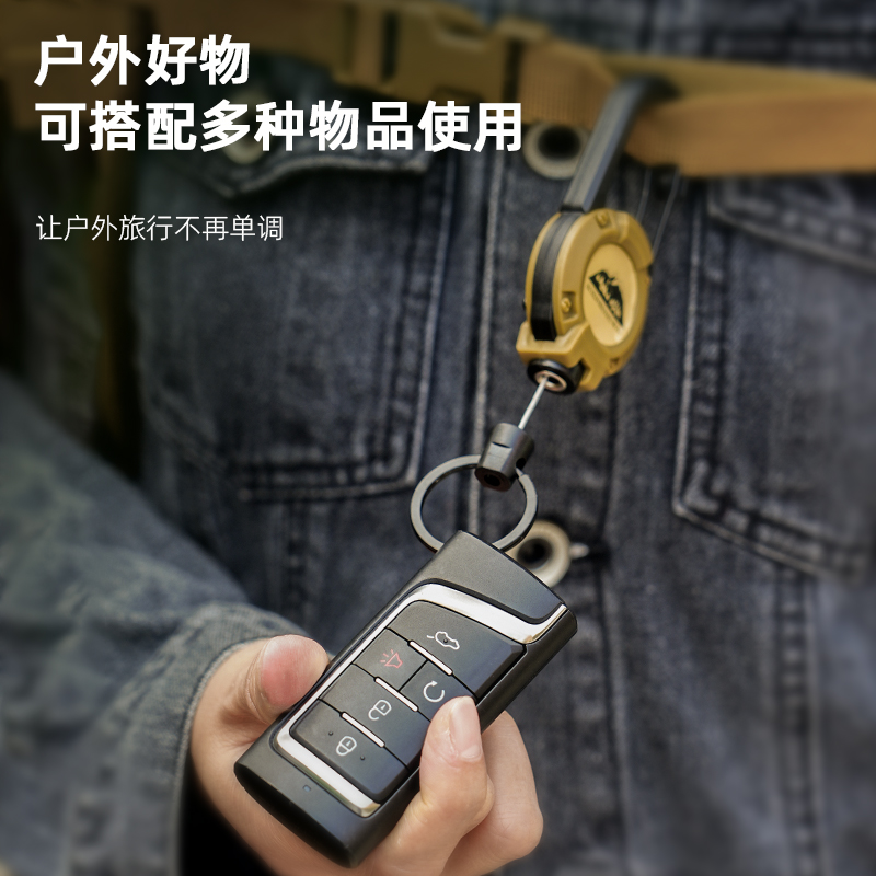 钢丝绳防丢钥匙扣战术易拉扣户外野营伸缩扣多功能露营自动回弹扣