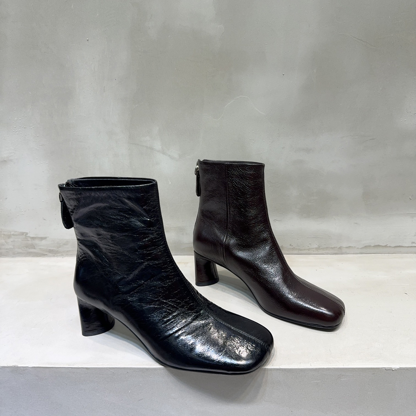 欧洲站女靴2025秋季新款欧货真皮方头粗跟短靴时装百搭高跟马丁靴