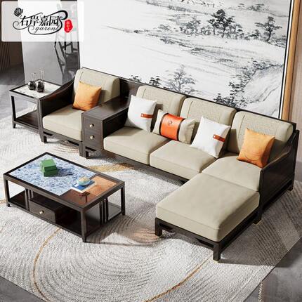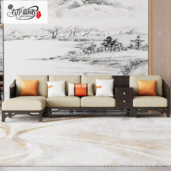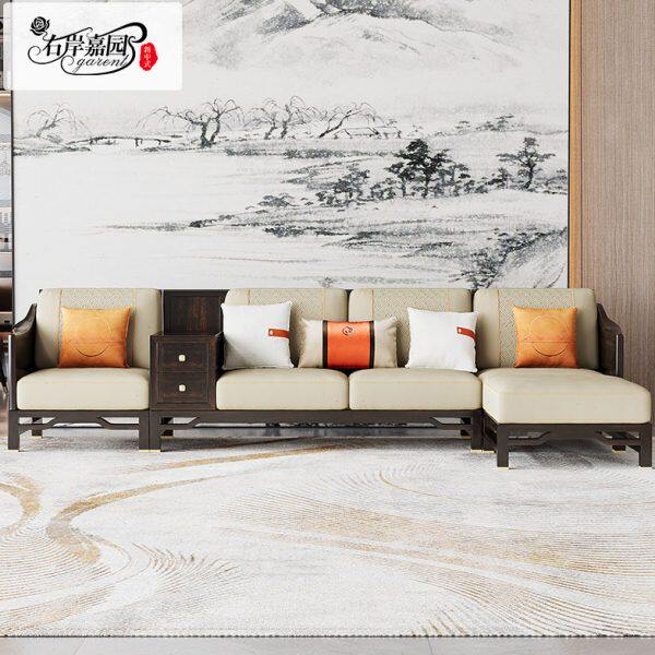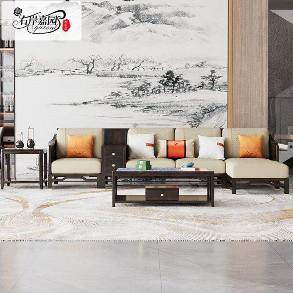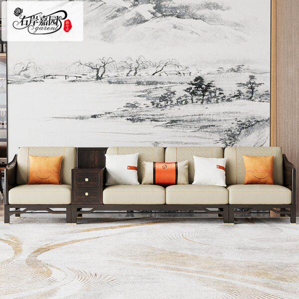 新中式全实木直排沙发客厅2023新款小户型真皮黑檀木贵妃位沙发