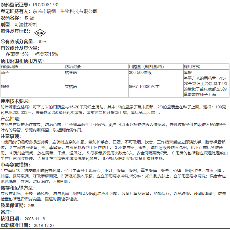 瑞德丰跟福灵30多菌灵福美双杀菌