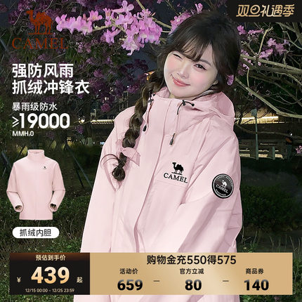 骆驼雨舞者冲锋衣女款三合一户外防水保暖连帽徒步登山服秋冬加厚