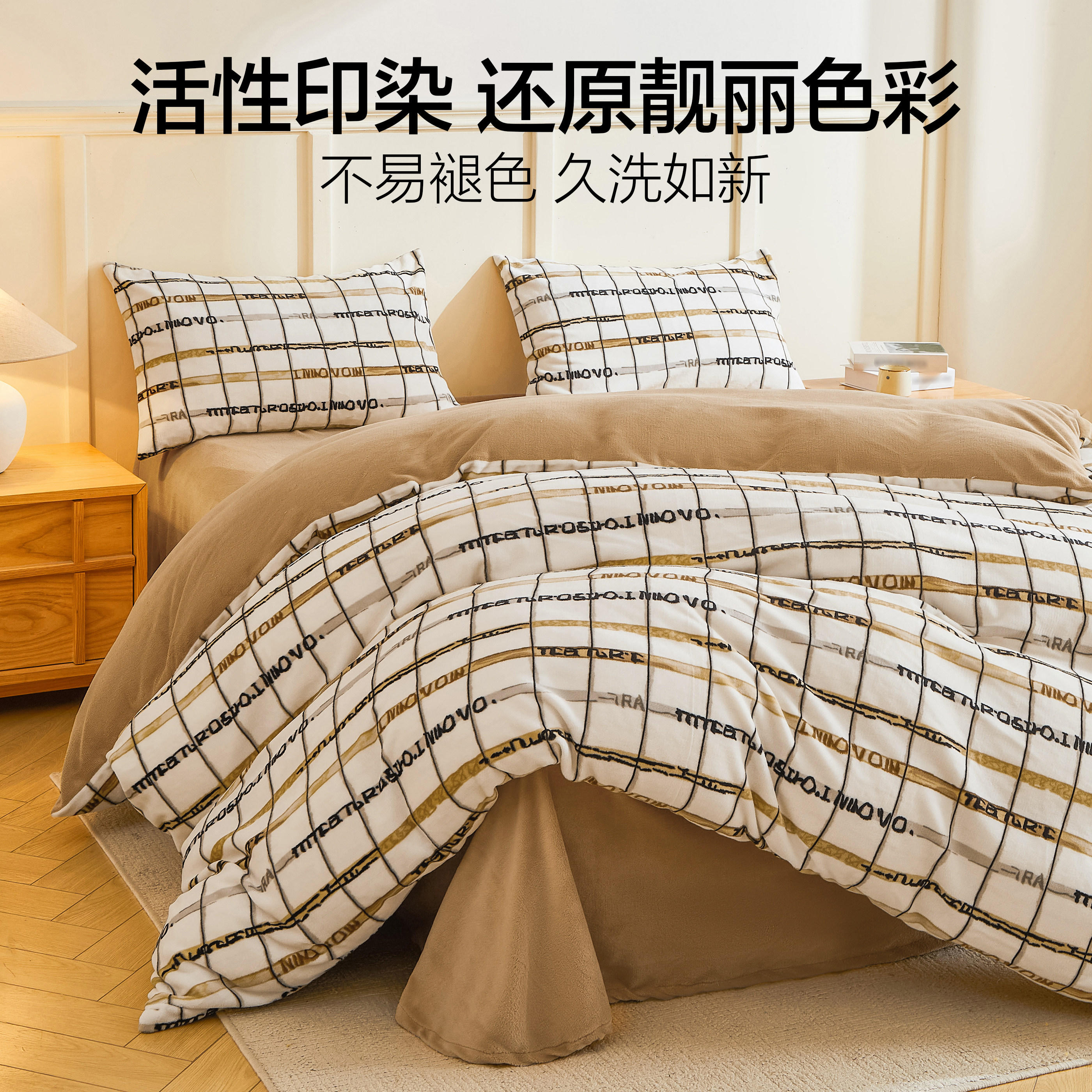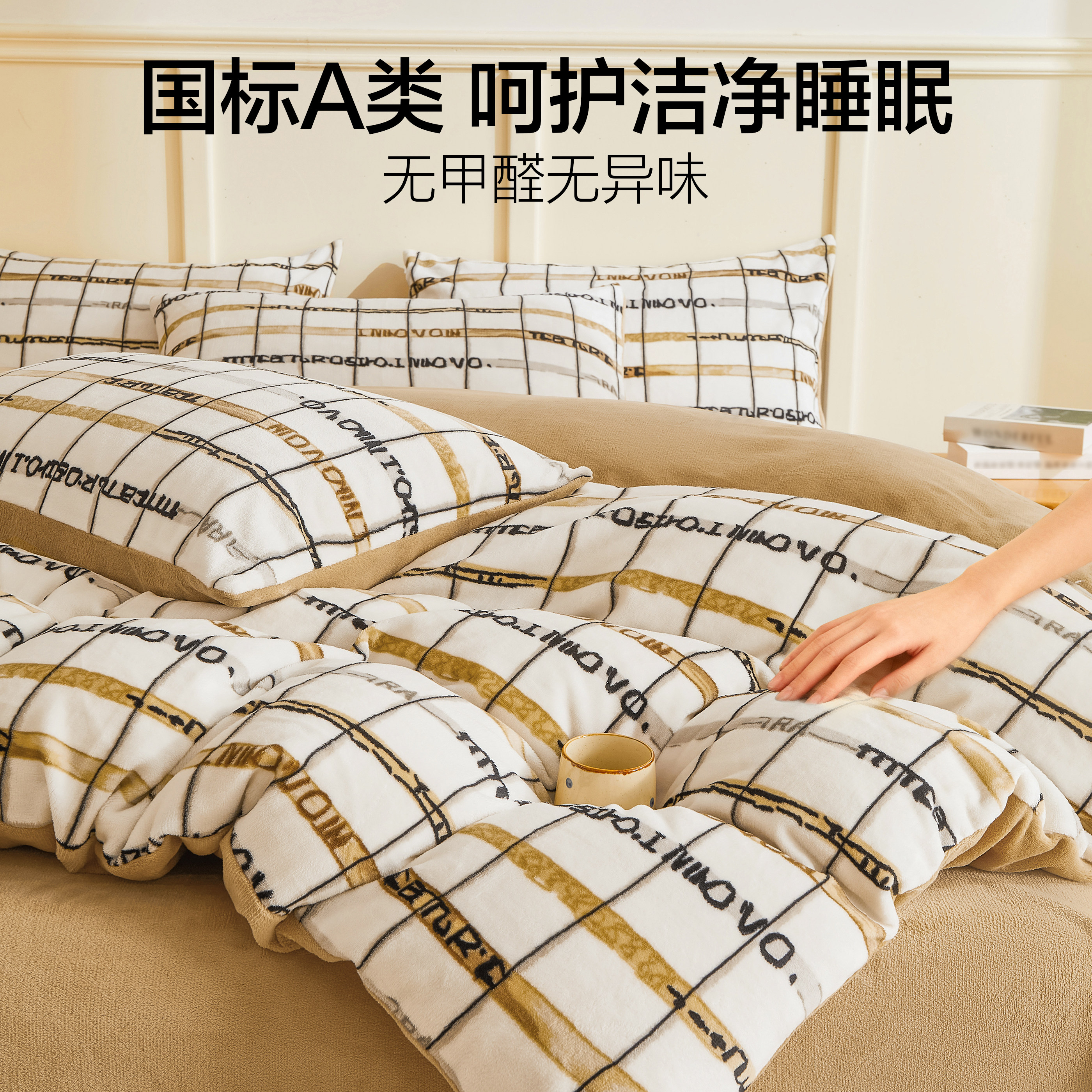 海澜之家加厚加绒床上四件套牛奶绒2026新款珊瑚绒被套床单冬床品