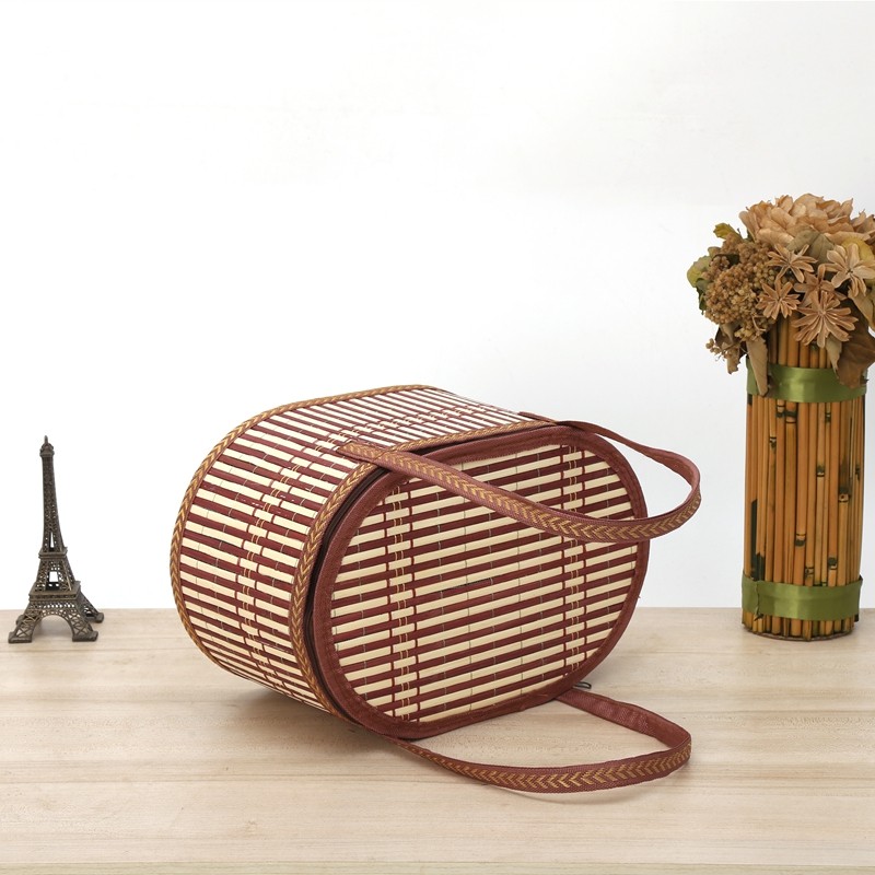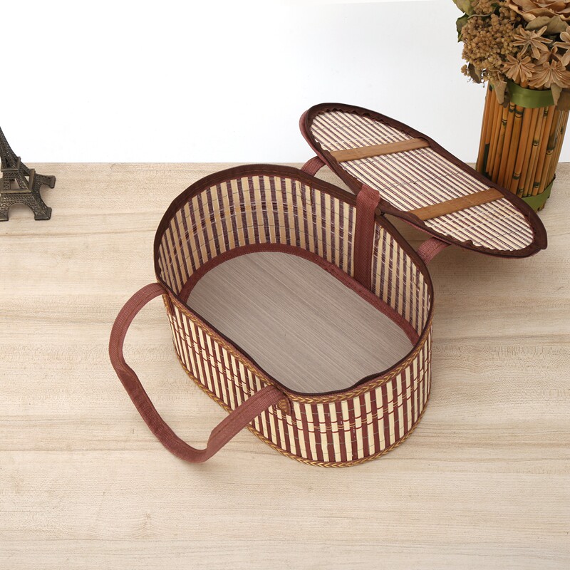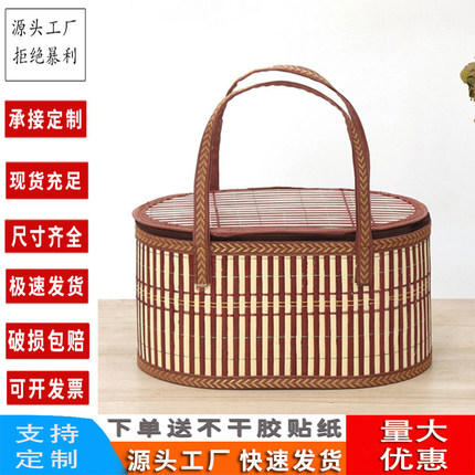 红棕色折叠竹篮端午粽子年礼盒特产厂家周岁礼现货定制鸡蛋编筐