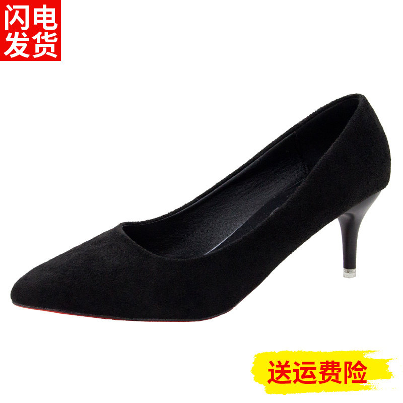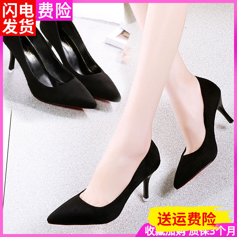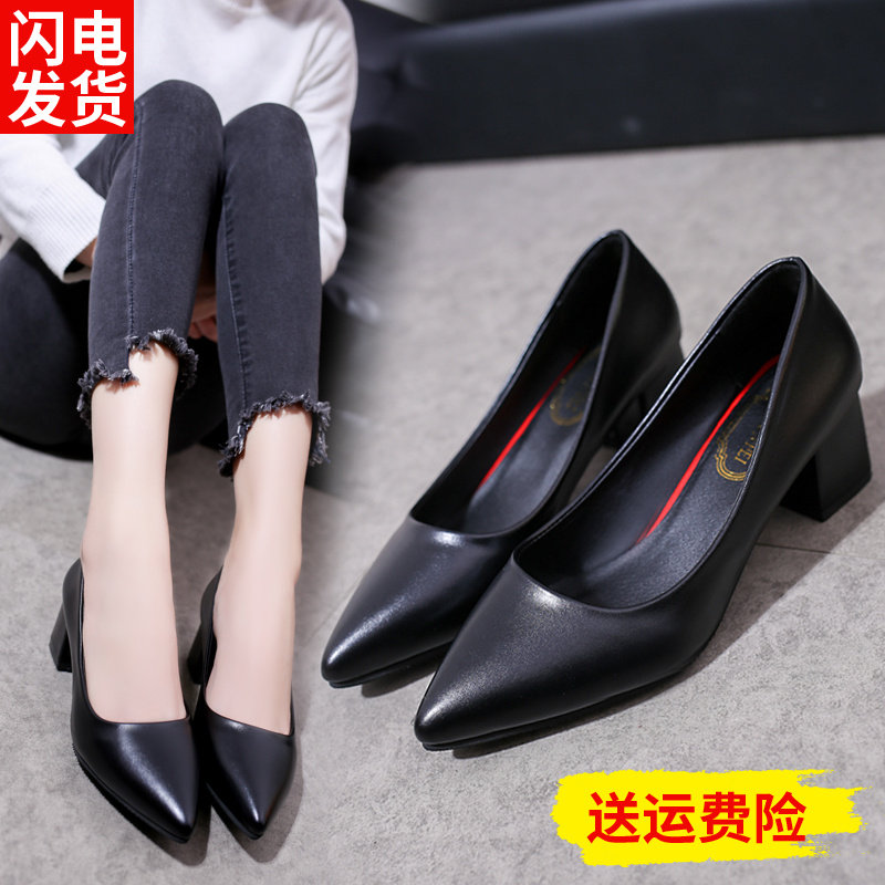 3公分黑色高跟鞋子女大学生礼仪教师面试正装职业工作小皮鞋5cm单