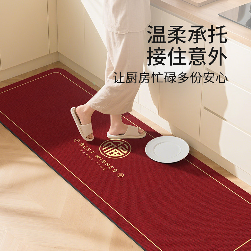 红色厨房地垫防滑防油可擦免洗硅藻泥吸水脚垫子耐脏防水专用地毯
