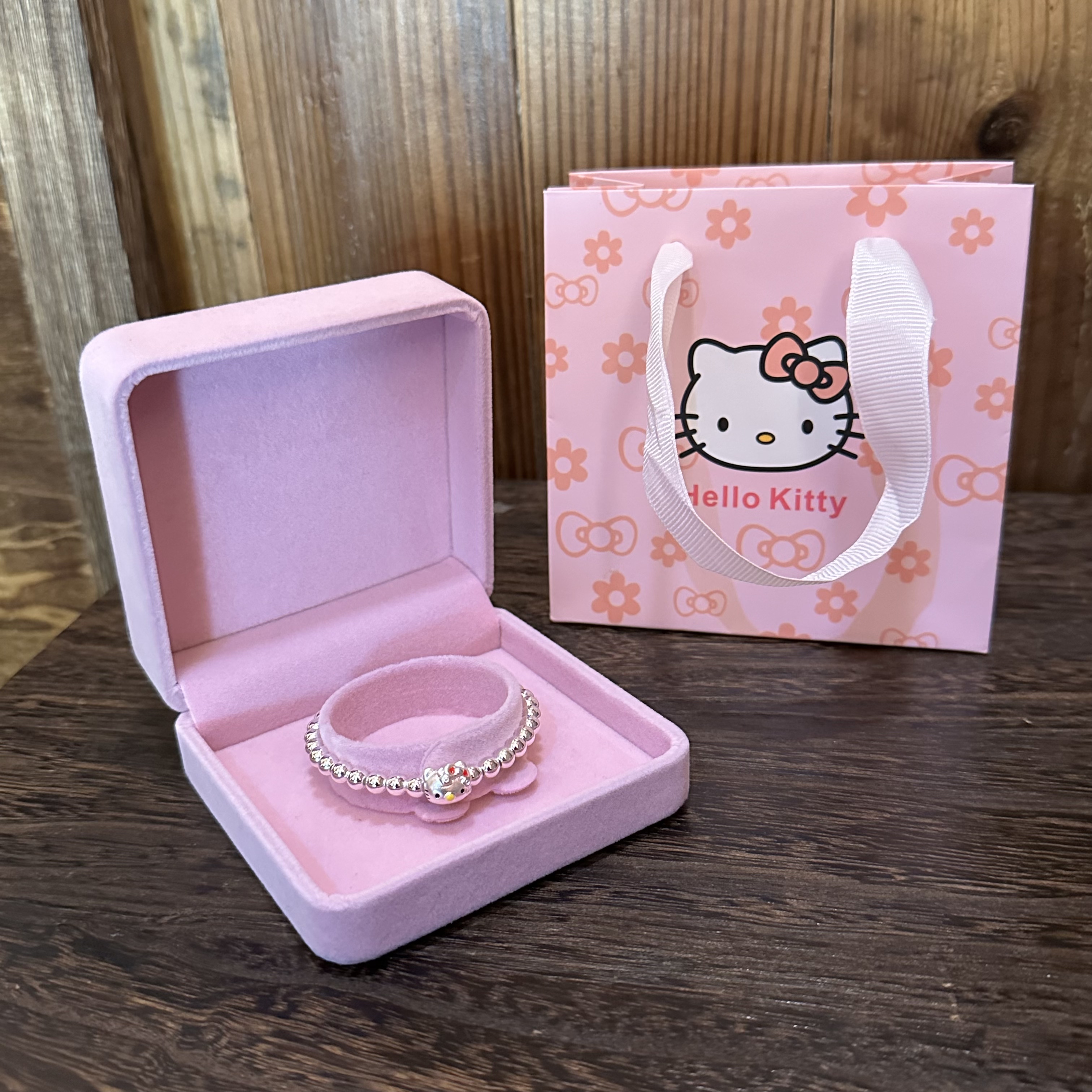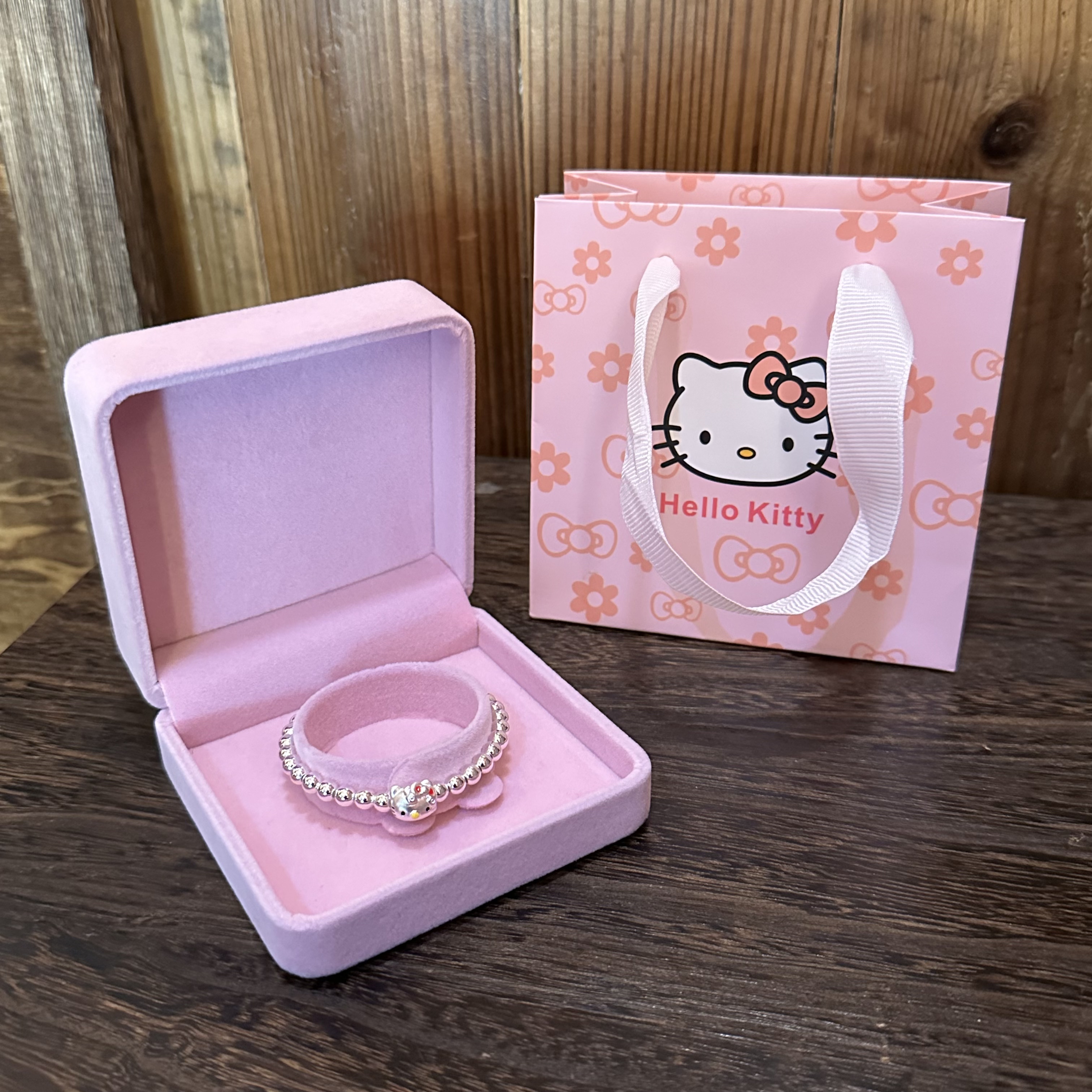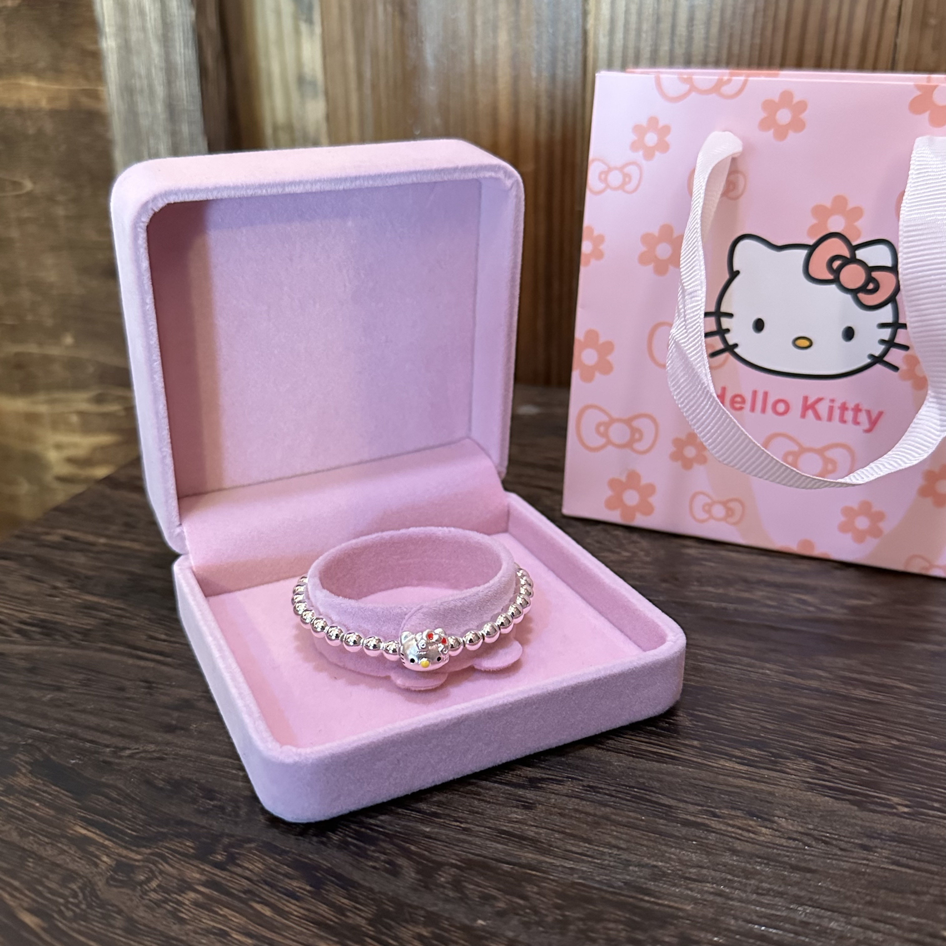 S999纯银圆珠手链女生简约Kitty吊坠银手串儿童宝宝闺蜜生日礼物