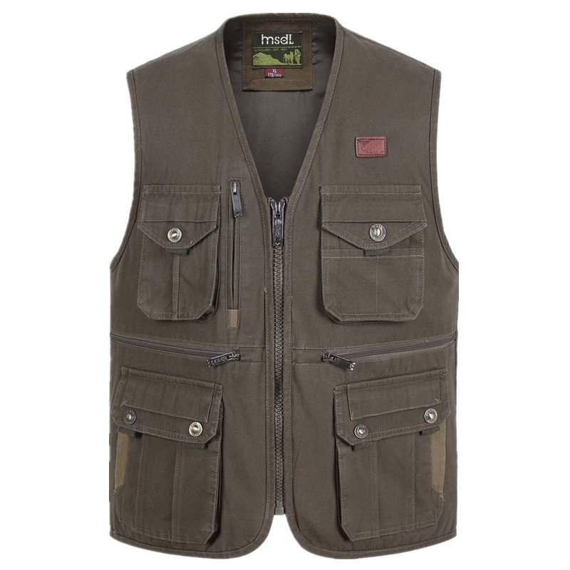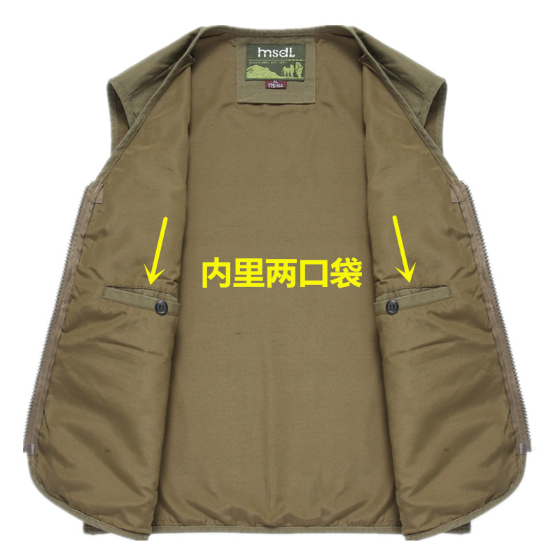 帆布多口袋马甲春秋纯棉男式中老年休闲登山摄影钓鱼背心坎肩爸爸