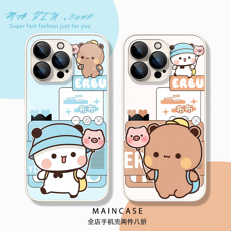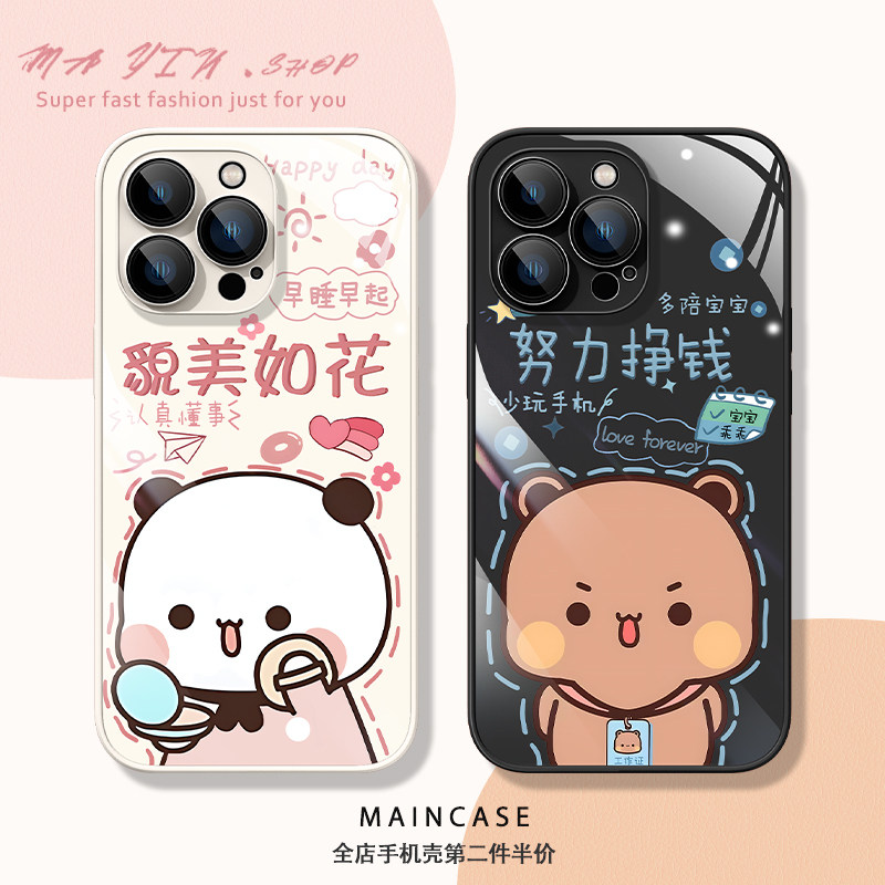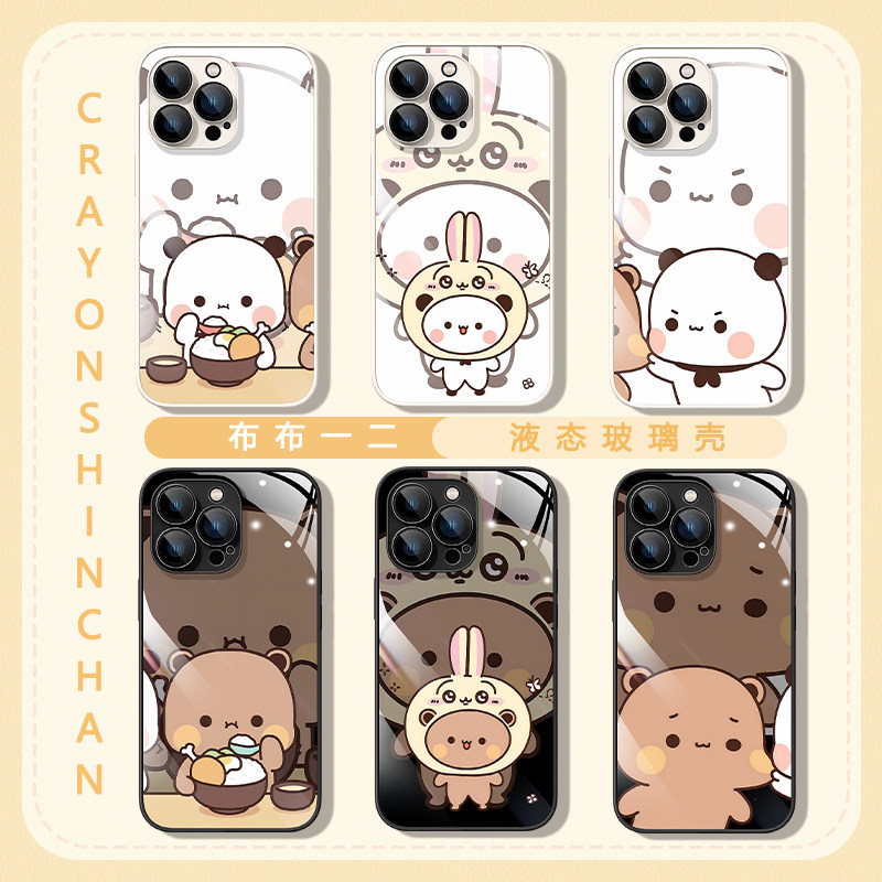 适用苹果15pro手机壳iPhone17玻璃壳14plus一二布布13promax情侣16女款12可爱11pro全包8p防摔6s散热xs卡通xr
