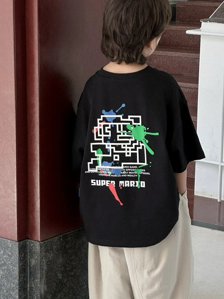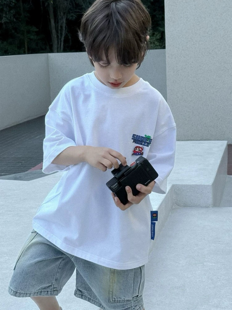 波拉韩国童装男童短袖T恤衫2025夏款儿童宽松休闲上衣亲子潮范