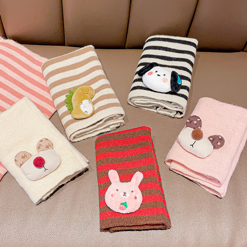 儿童新款卡通围巾男女童保暖护颈脖套秋冬季宝宝冬天防风条纹围脖