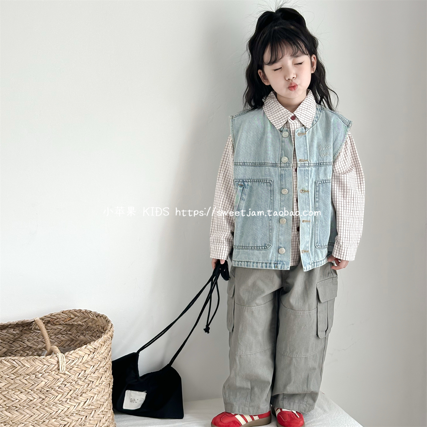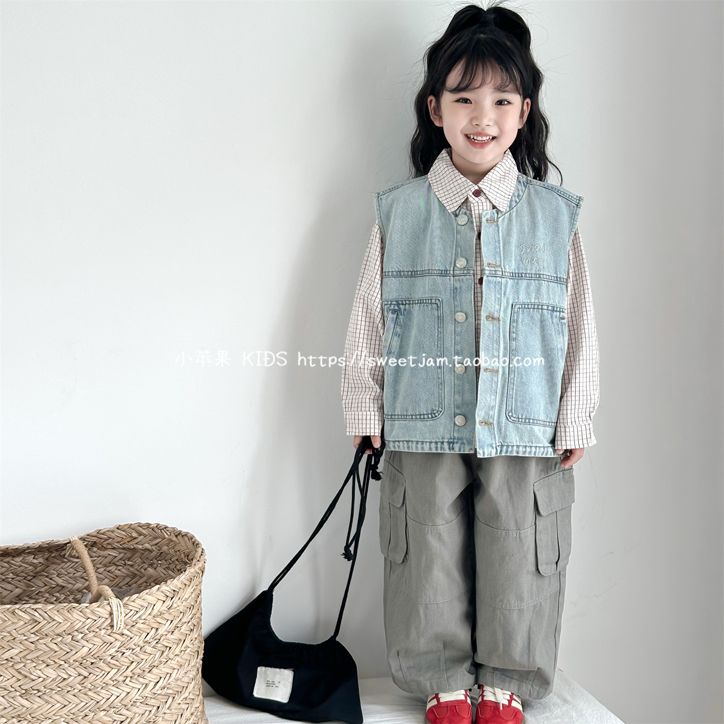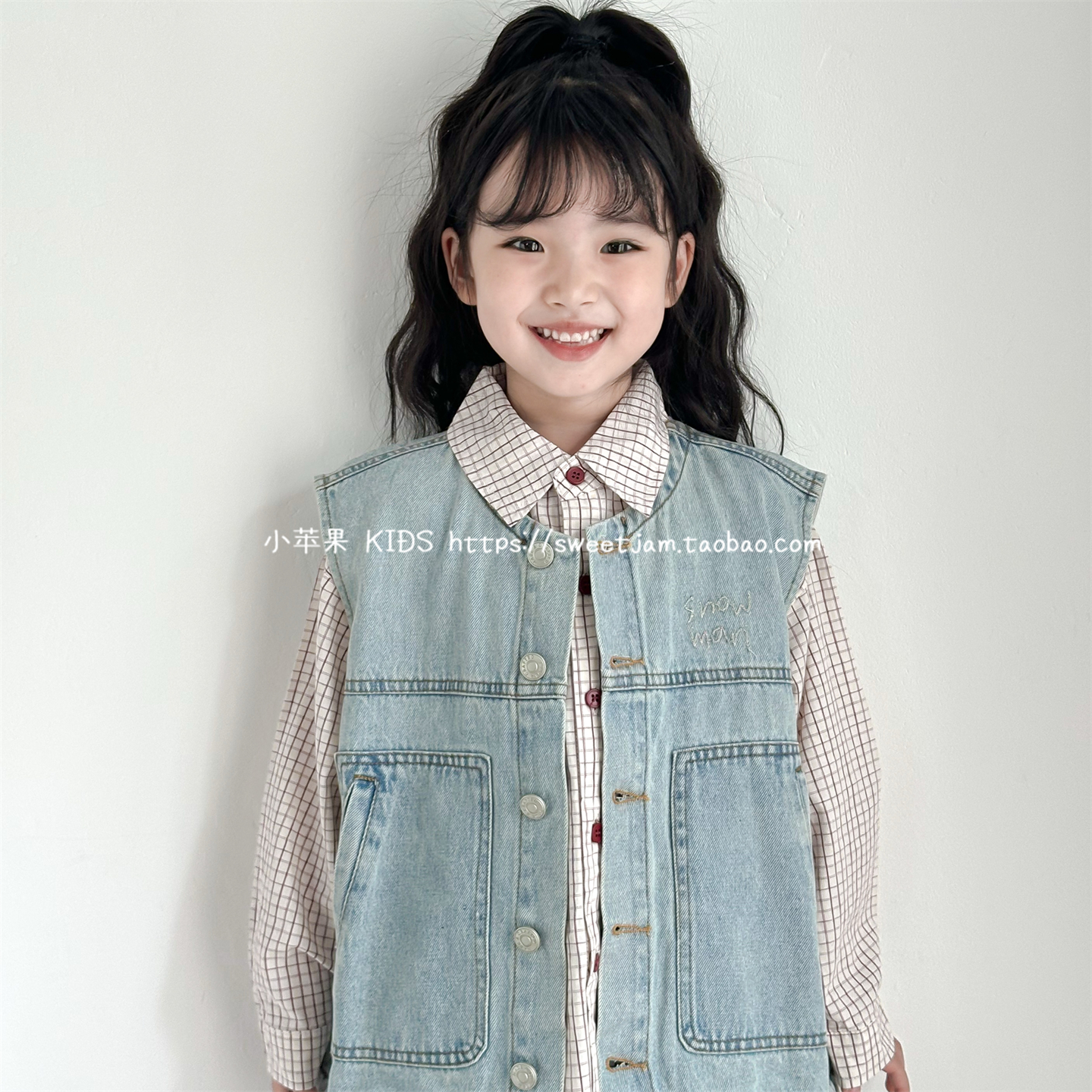 小苹果2025春秋韩版男女童宝宝百搭洋气牛仔马甲儿童时髦休闲外套