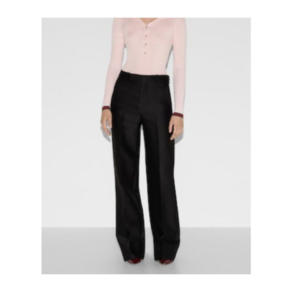 GUCCI 女士休闲裤 814064Z7AE71000 SS2025 黑色 腰带环休闲裤