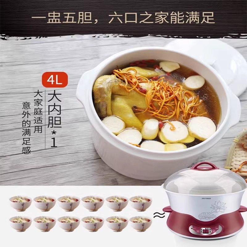 天际电炖锅燕窝炖盅隔水炖家用4L陶瓷bb煲汤锅电用多功能煮粥熬汤