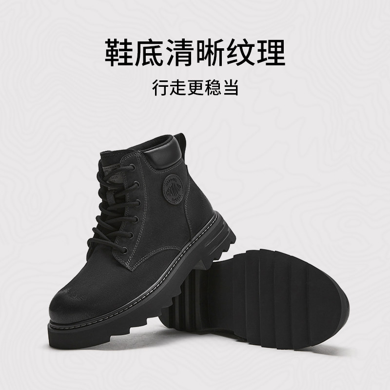热风男鞋冬季新款工装靴男士时尚休闲马丁靴复古户外登山靴