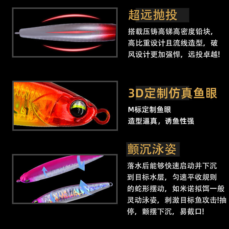 金舟翘啸超远投沉水铅笔路亚饵颤沉缓沉假饵淡水海钓翘嘴鲈鱼鱤鱼
