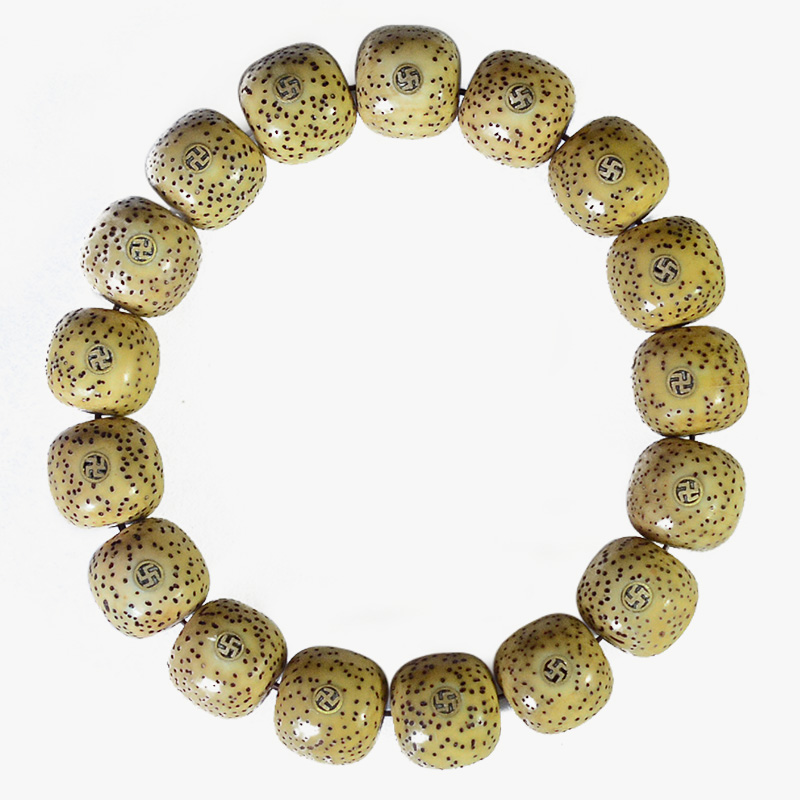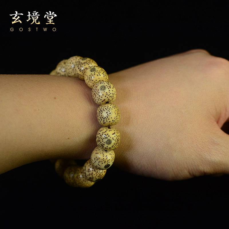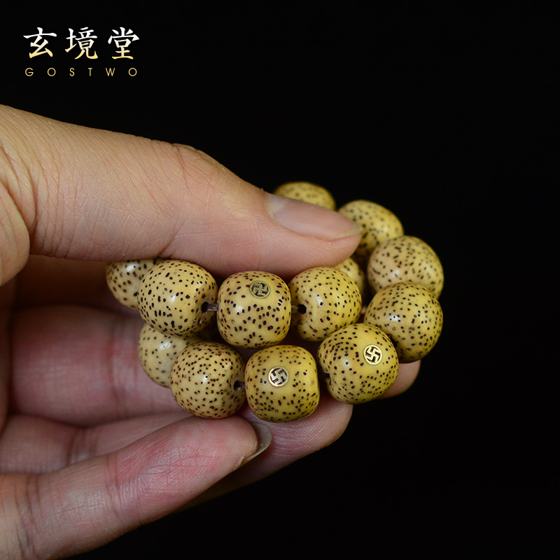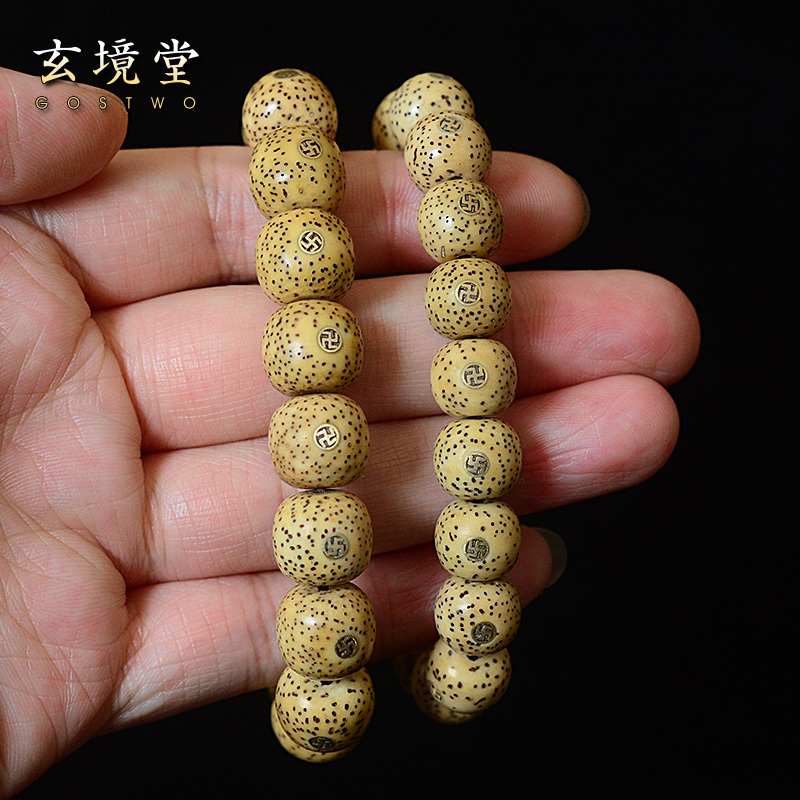 原生态星月菩提手串老型桶珠镶嵌万字11/12mm黄籽高密干磨抛光