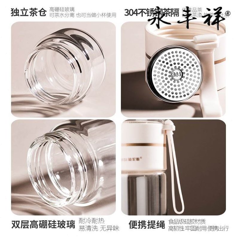个人办公室茶杯双层泡茶杯子专用男女夏季水杯便携茶水分离玻璃杯