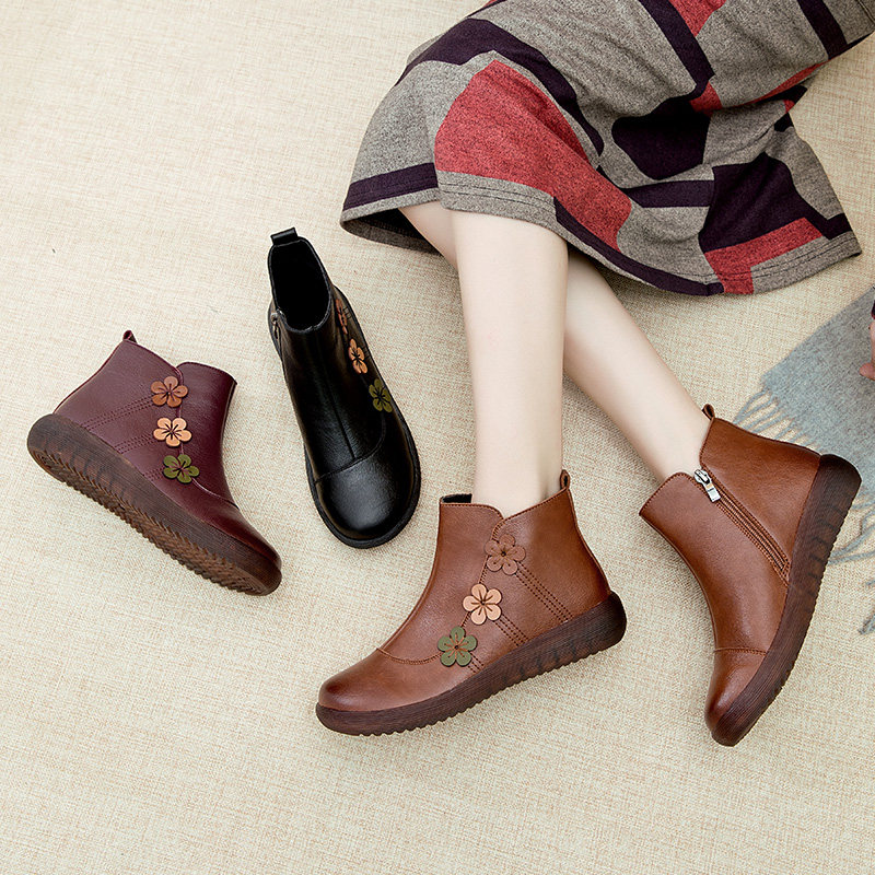 民族风软底短靴女加绒老人鞋