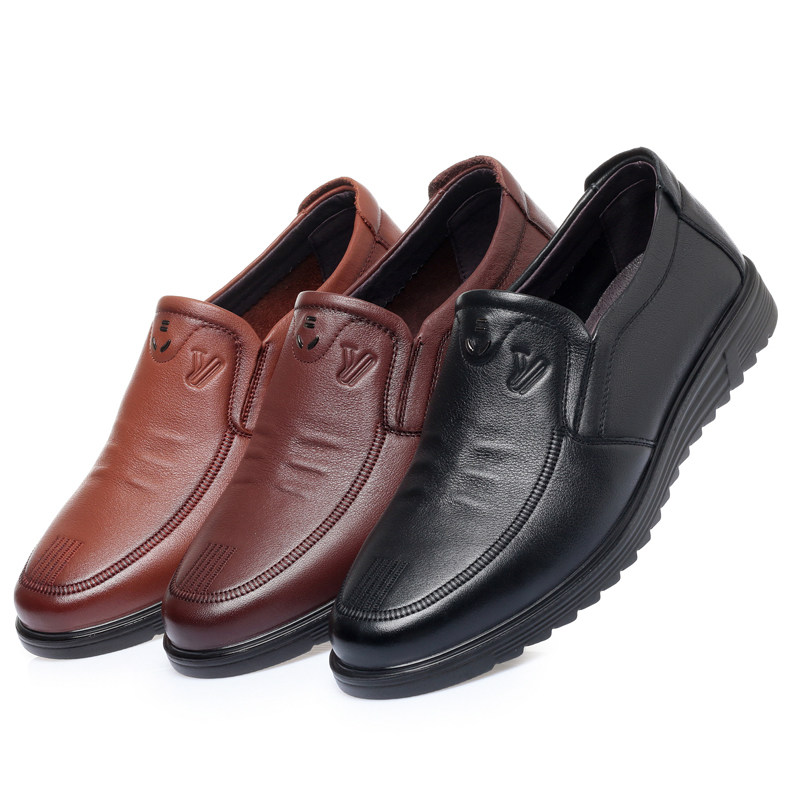 意尔康男鞋春秋季新款商务休闲皮鞋男士真皮软底软面透气爸爸鞋子