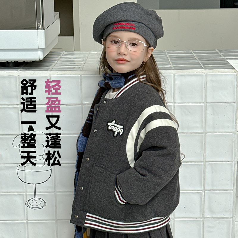 尤画正品女童羽绒服儿童洋气灰色中大童加厚棒球服白鹅绒冬装外套