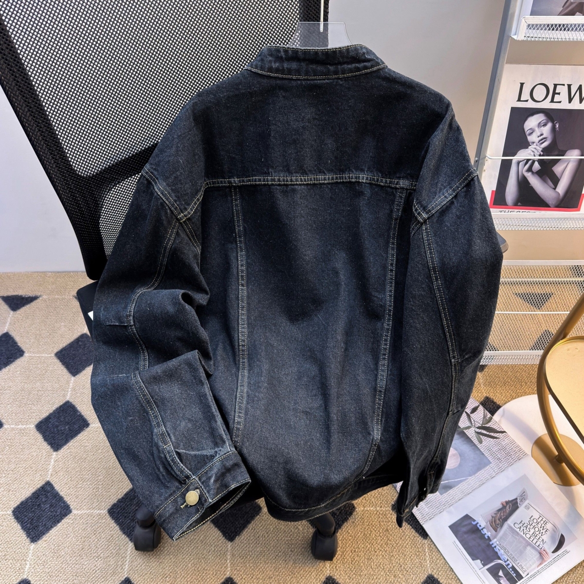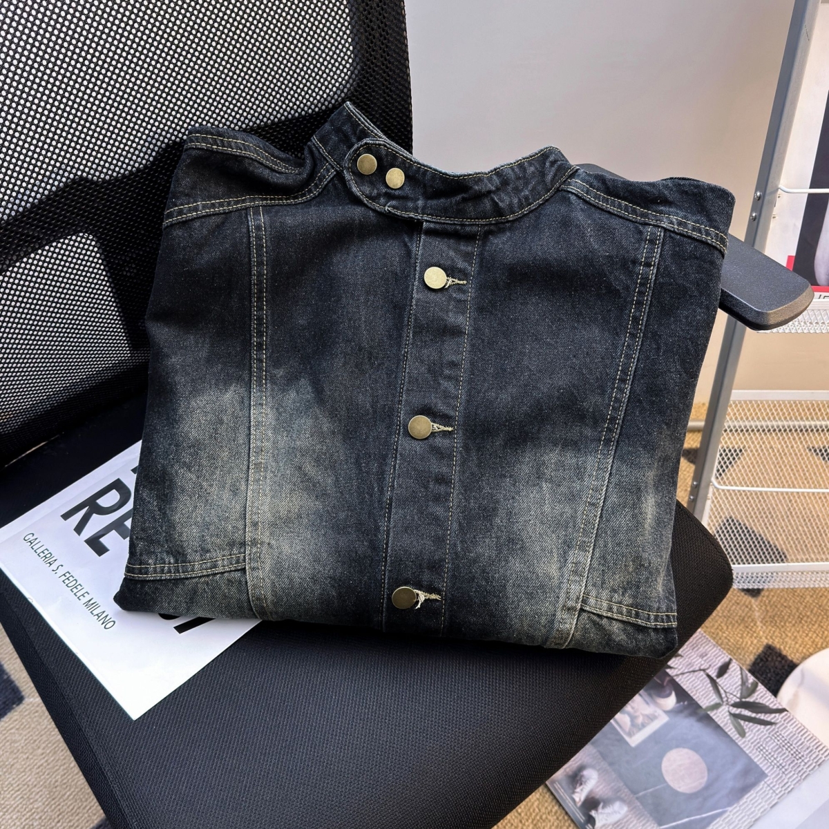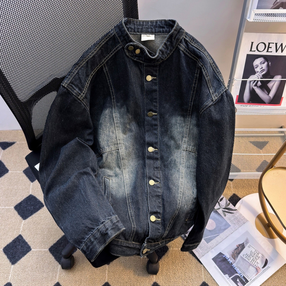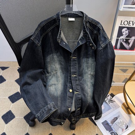 美式复古水洗做旧立领重磅牛仔外套男女春季街头宽松休闲夹克潮流