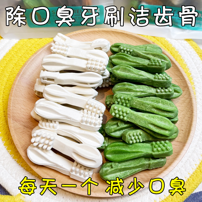 月亮狗狗零食牙刷头磨牙棒洁齿骨幼小型犬补钙除口臭奶味咬胶奖励