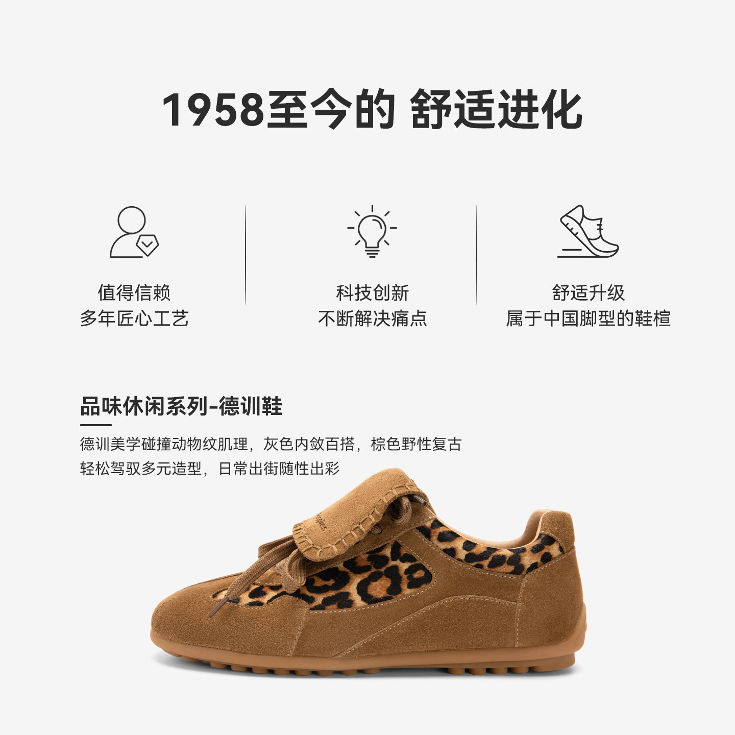 暇步士女款内增高复古百搭德训鞋