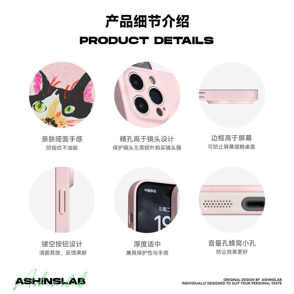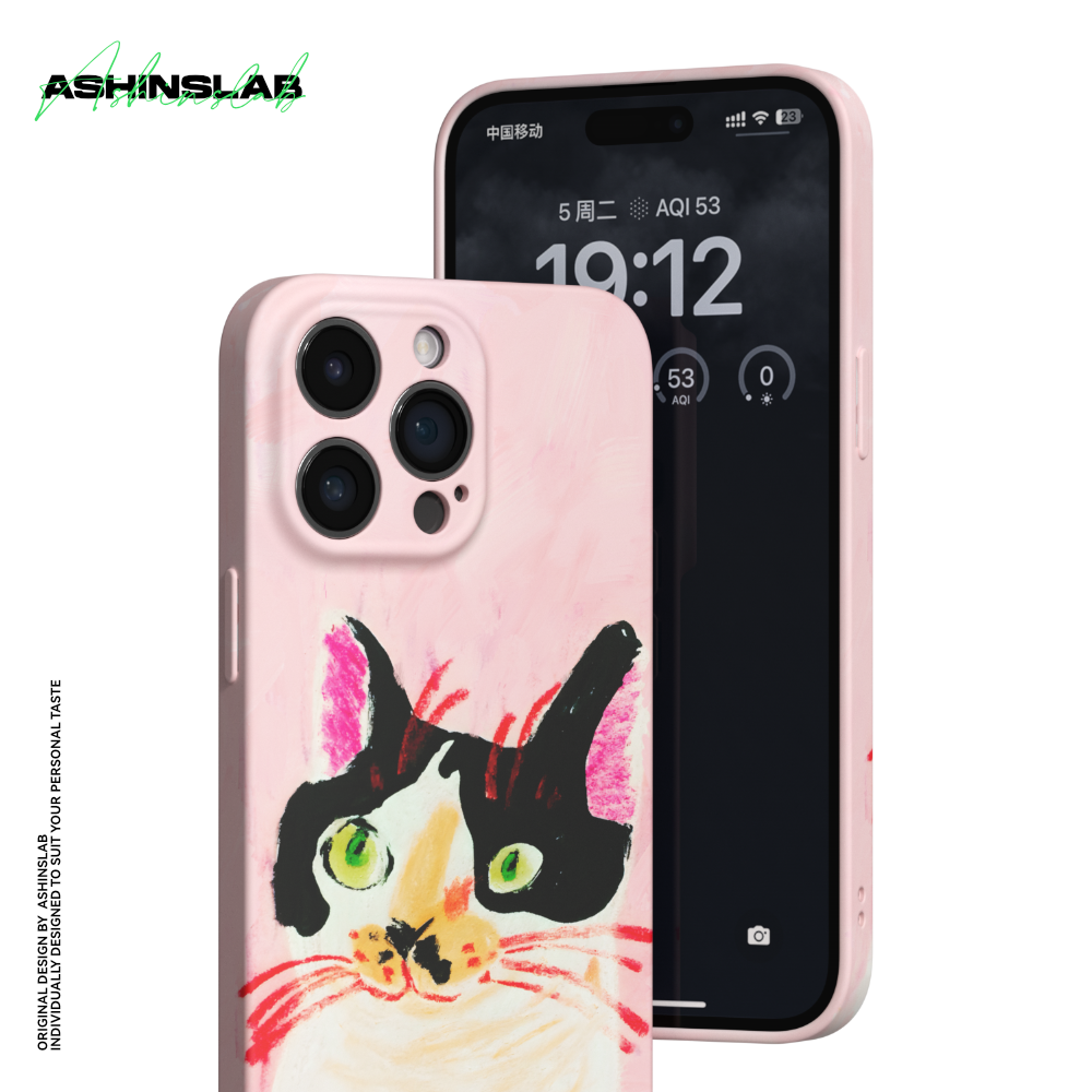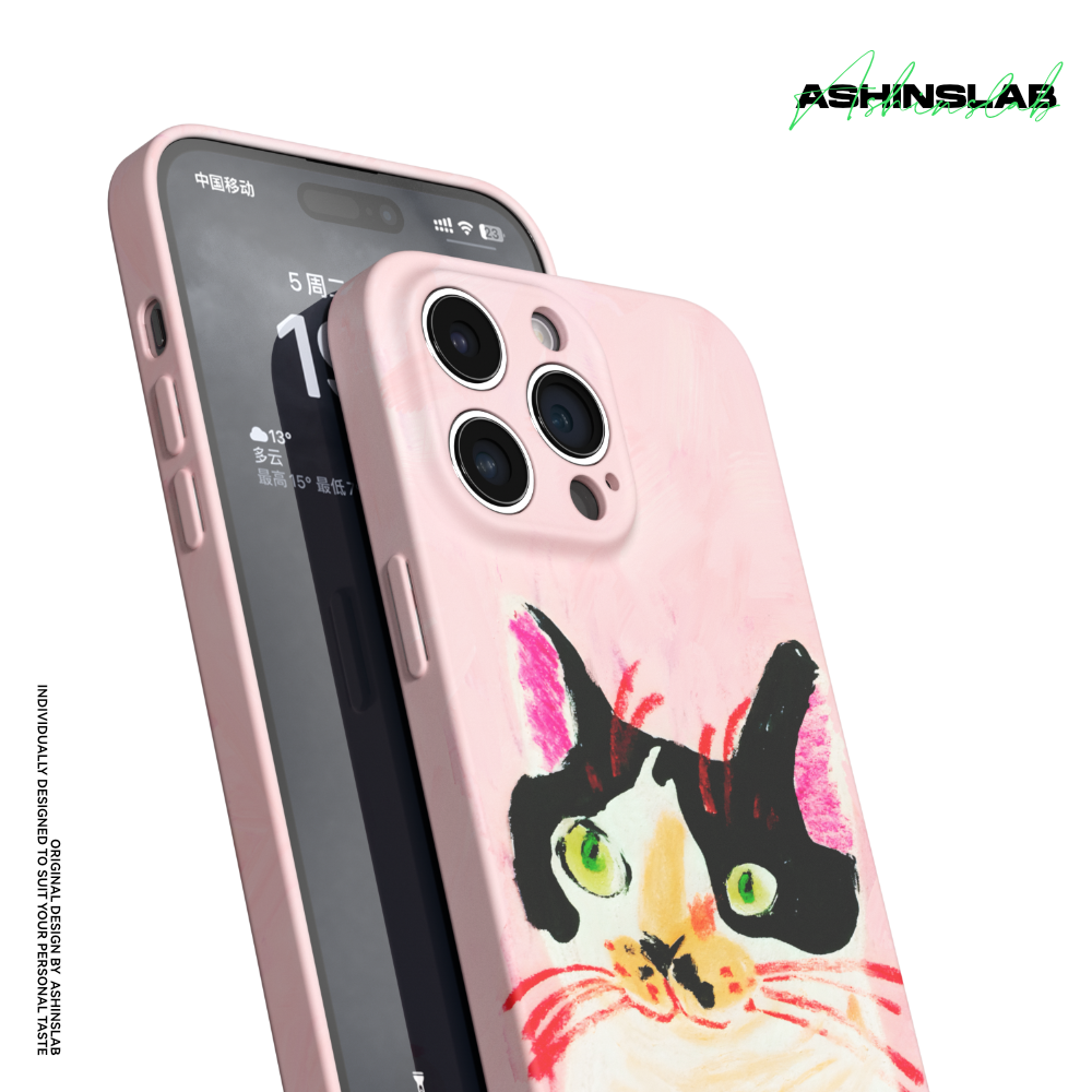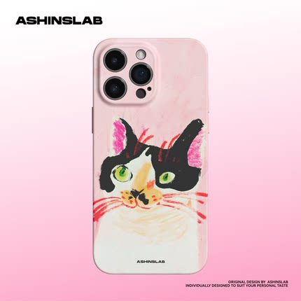 呆萌猫咪华为mate60苹果15promax手机壳新款高级感小众适用iphone14plus美术生13全包精孔磨砂12pm艺术插画16
