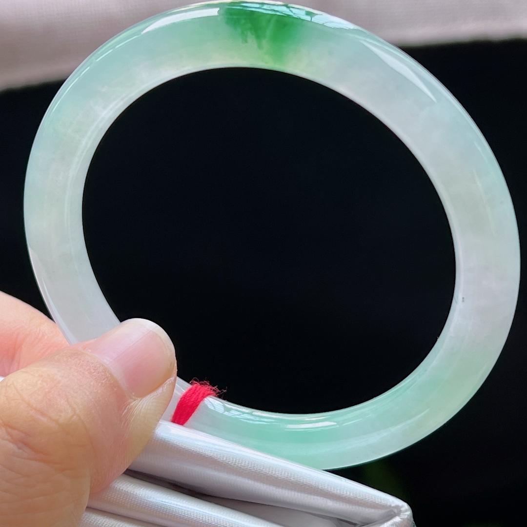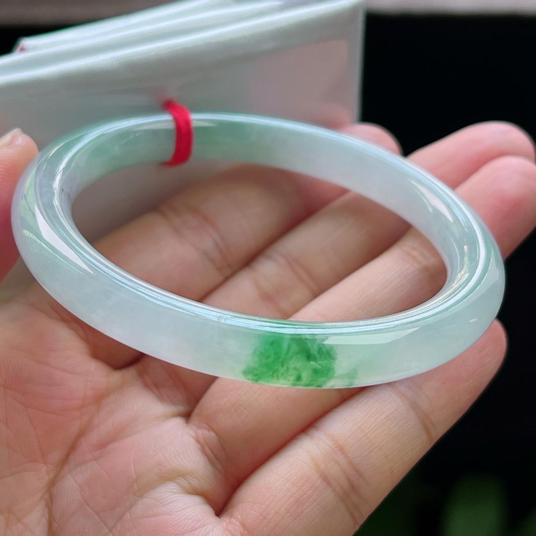 缅甸翡翠玉手镯福镯圆条56圈口天然玉石A货冰种飘花新款收藏1003