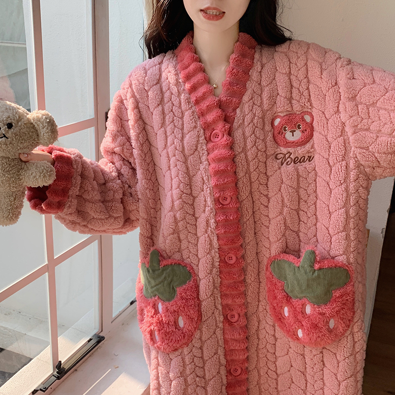 珊瑚绒睡袍女秋冬长款加厚甜美可爱睡裙法兰绒浴袍冬季睡衣家居服