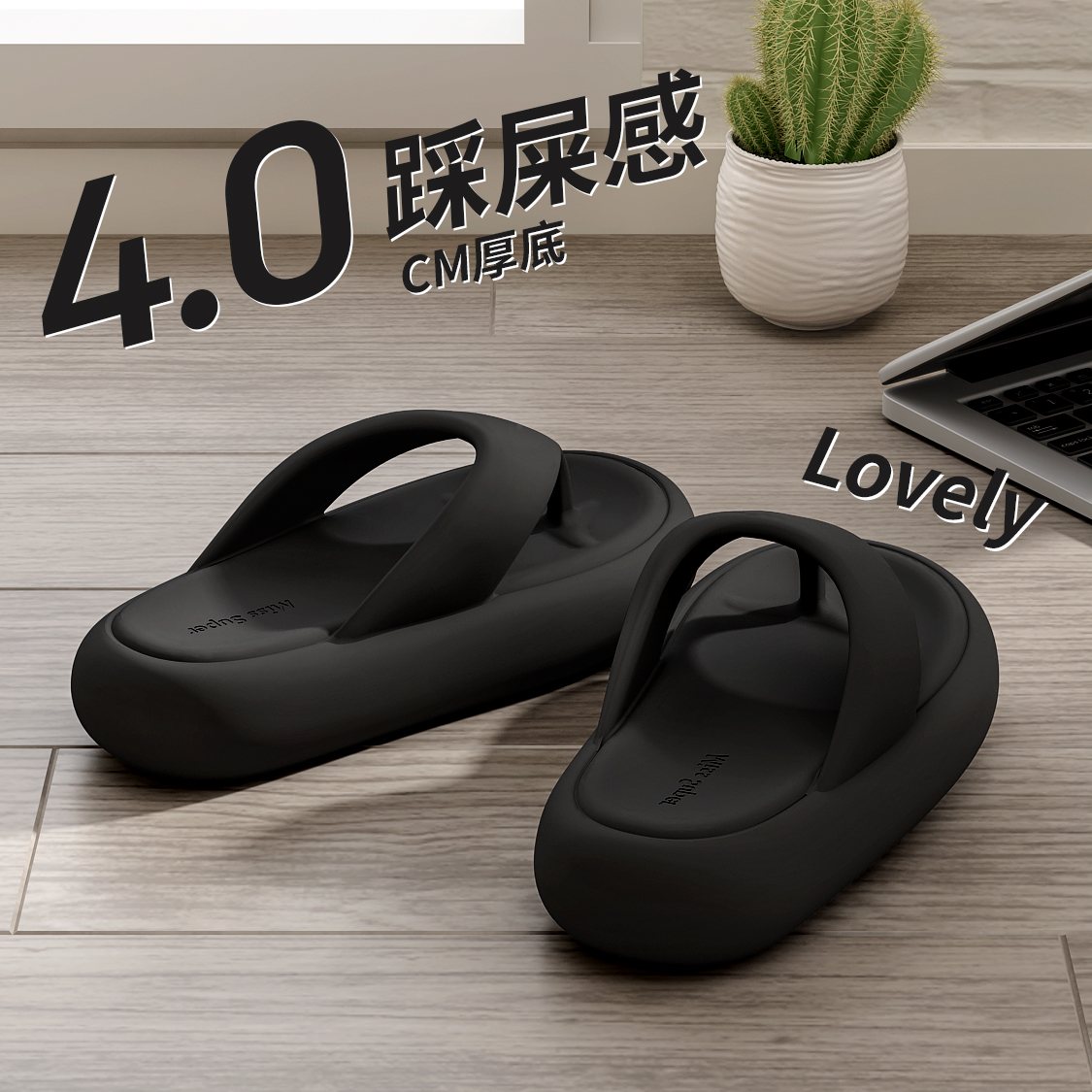 4.0cm踩屎感夹脚人字拖女士夏季新款沙滩外穿家居网红百搭凉拖鞋