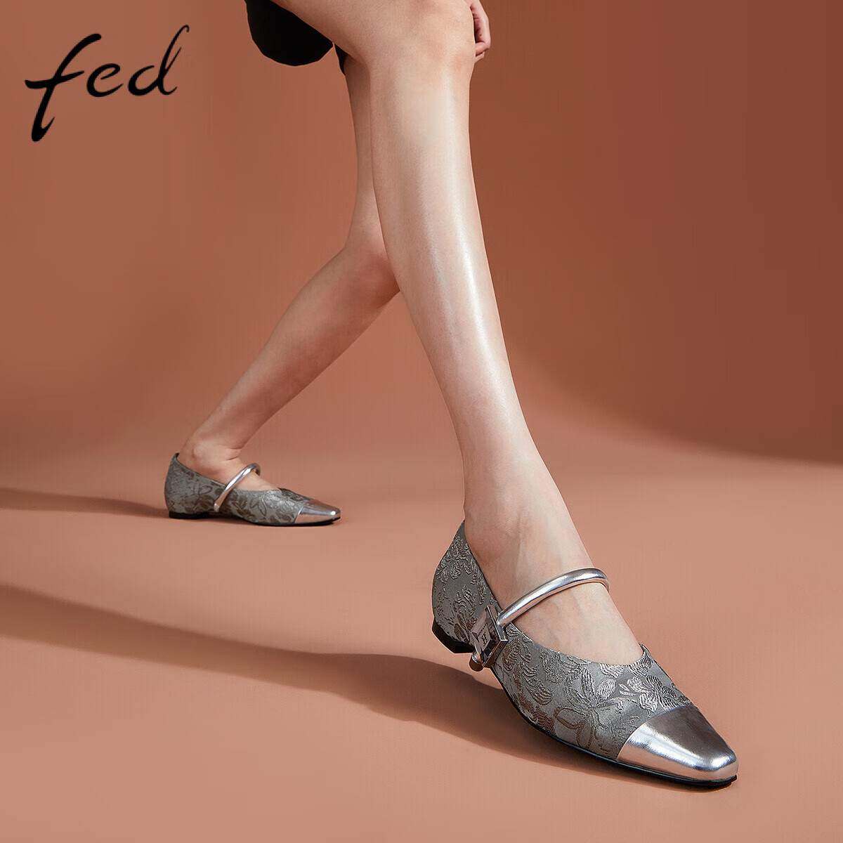 FED国风女鞋秋季2024小方头浅口内增高平底单鞋女玛丽珍时装鞋女