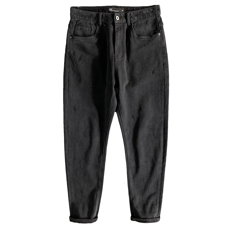新款2024新款男高端牛仔裤烟灰黑色微锥型做旧复古显瘦小脚长裤