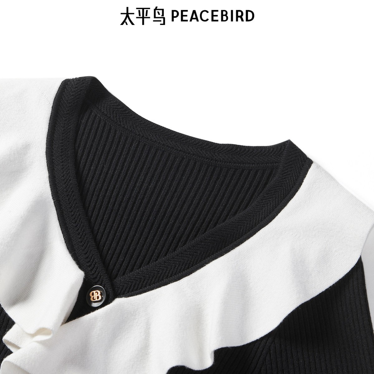 太平鸟秋冬休闲高级气质品质荷叶边连衣裙