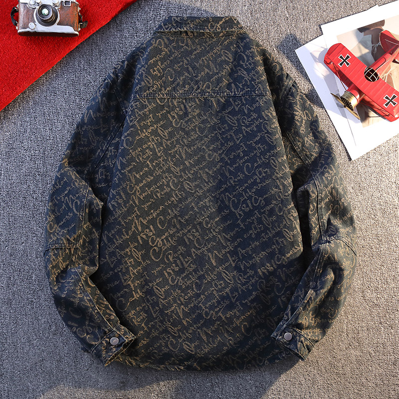 美式复古提花牛仔外套男春秋季新款潮牌休闲男士长袖工装衬衫夹克