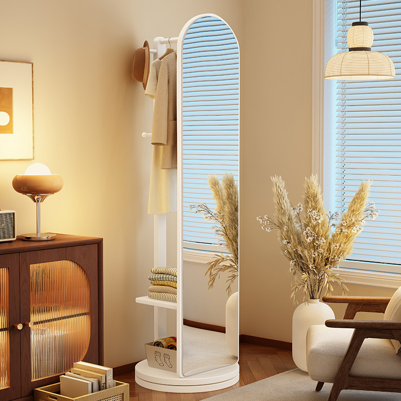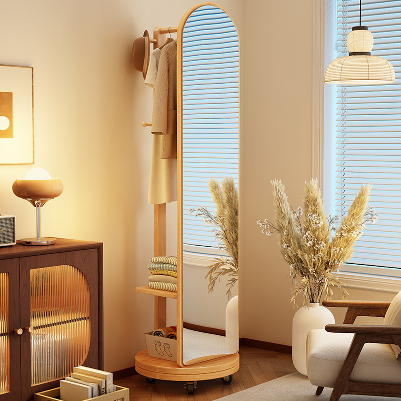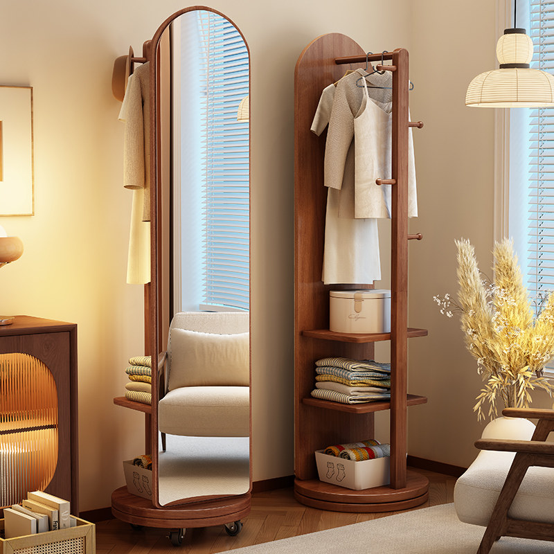 蓝色理想实木穿衣镜全身镜家用卧室可移动落地镜旋转省空间穿衣镜