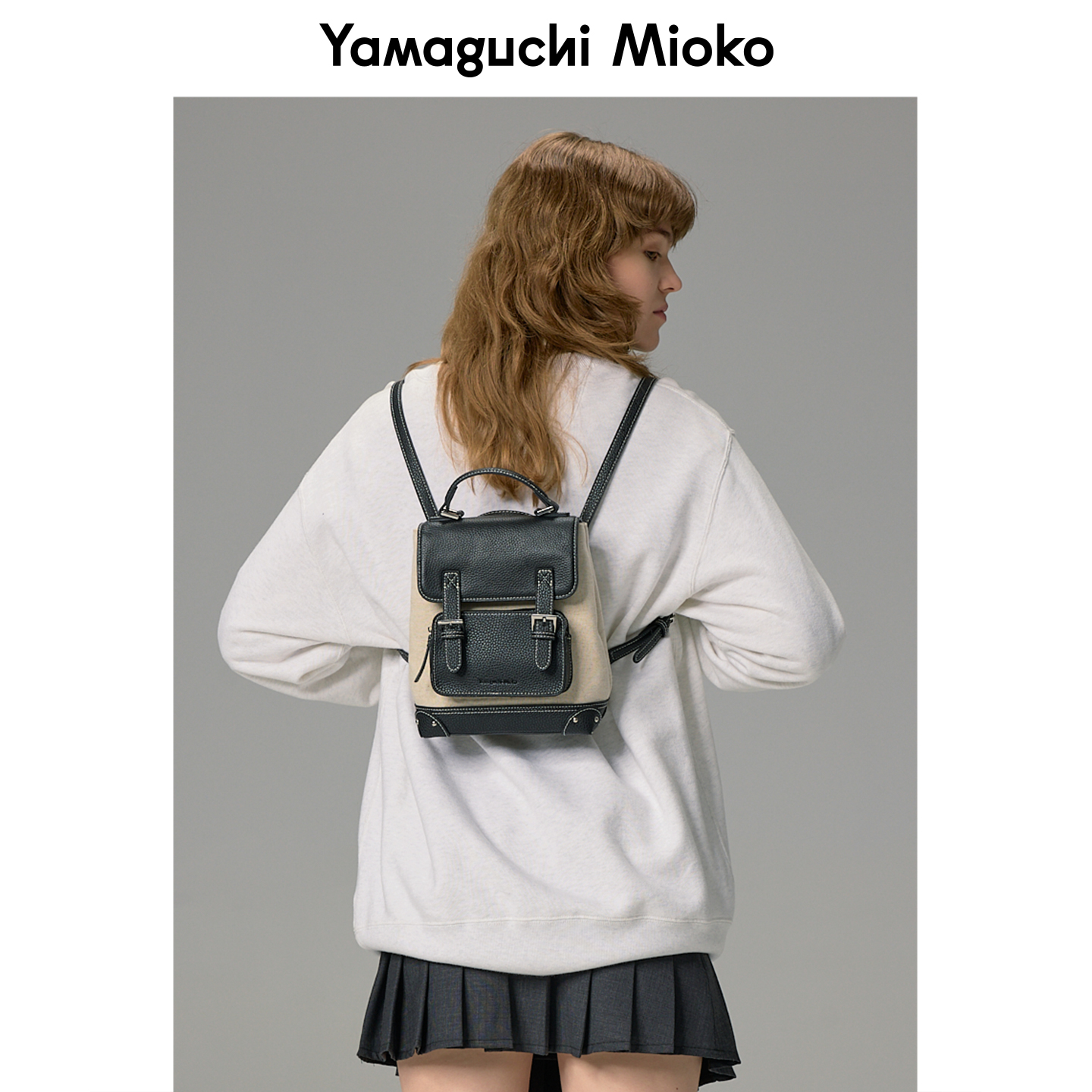 山口美袋“魔法肩带”多种背法拼色亚麻荔枝真皮小号双肩斜挎包