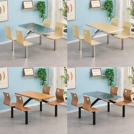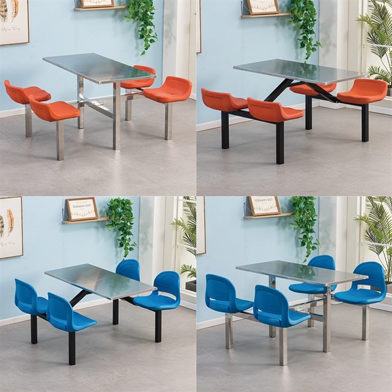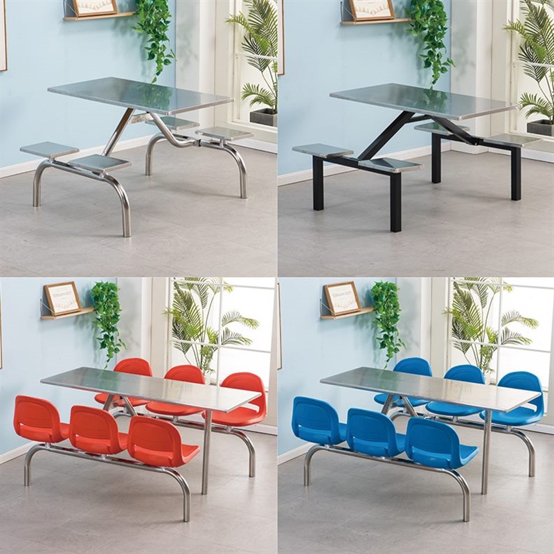 高档快餐桌椅堂不锈n钢饭连体人8组合位员工餐桌学校食堂餐桌椅单