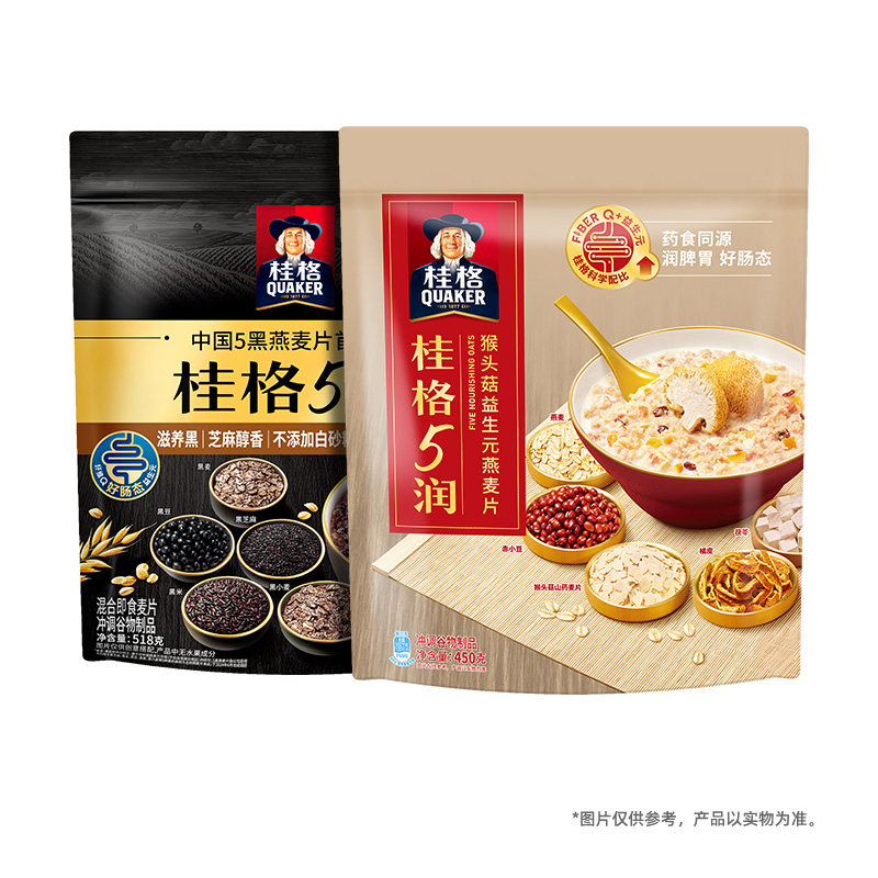 桂格5润5黑麦片组合混合即食麦片968g*1组饱腹懒人营养早餐
