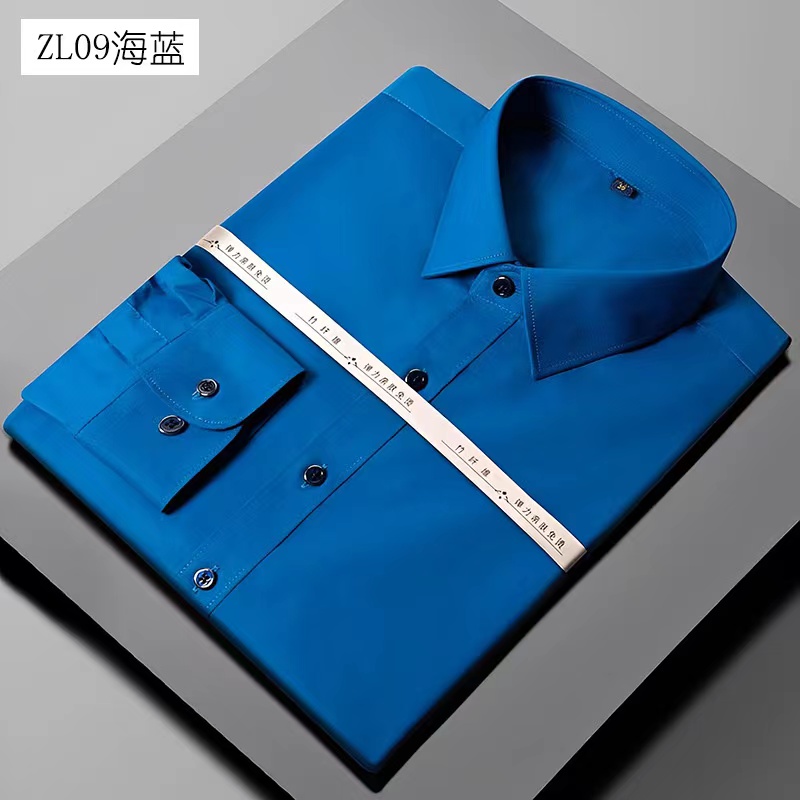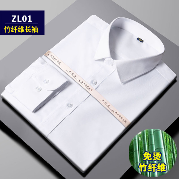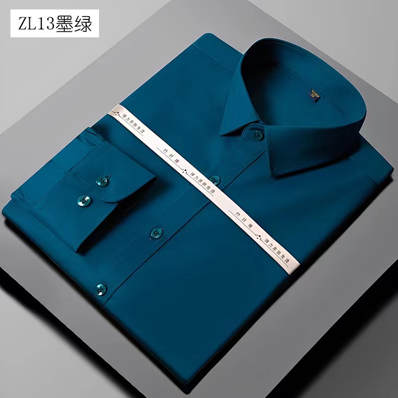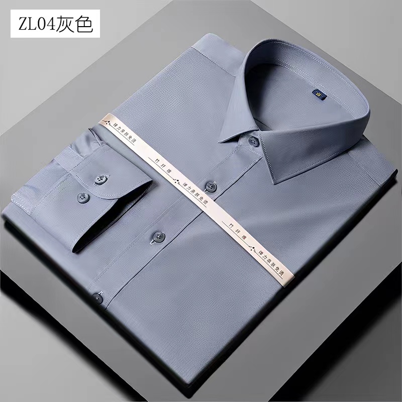 高级感竹纤维冰丝免烫抗皱男士长袖衬衫纯色商务正装青年衬衣大码