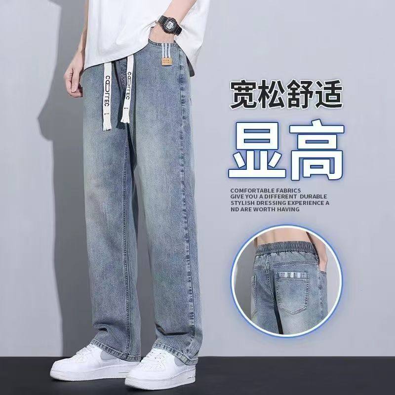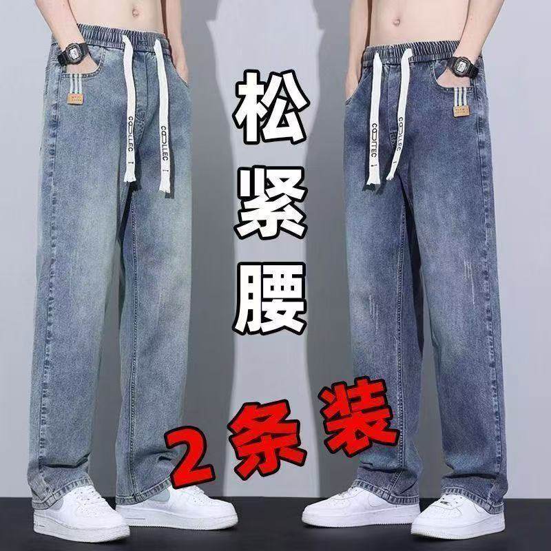 2025夏季潮流裤子男士耐磨耐脏牛仔裤松紧腰宽松直筒青少年男裤子