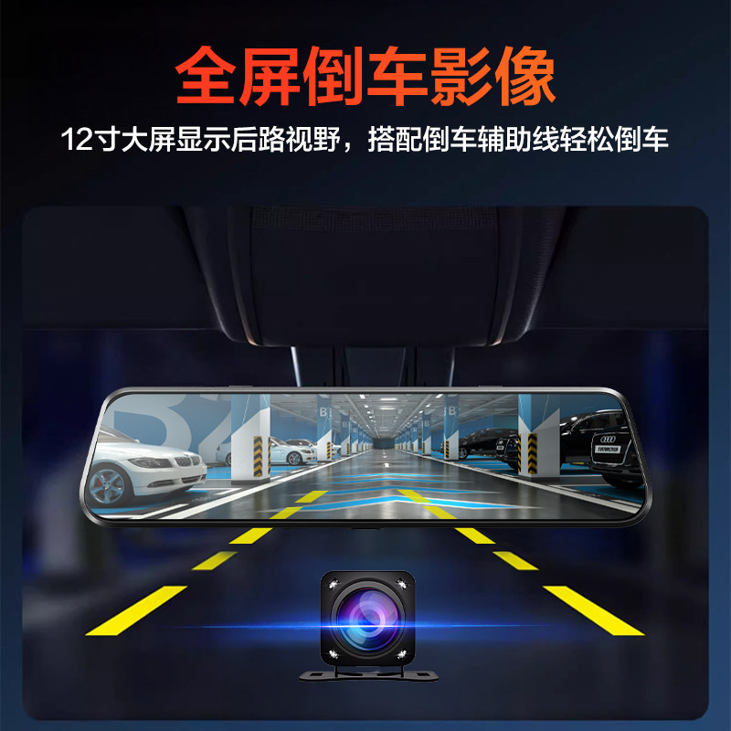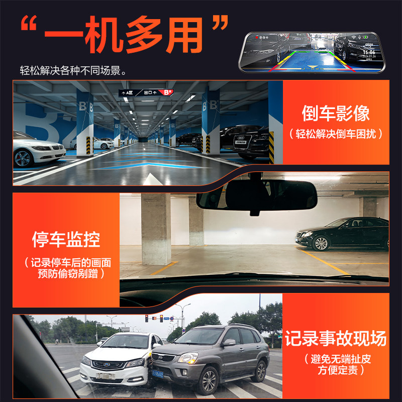 爱国者行车记录仪4K前后双摄360度倒车影像超清全景免走线后视镜