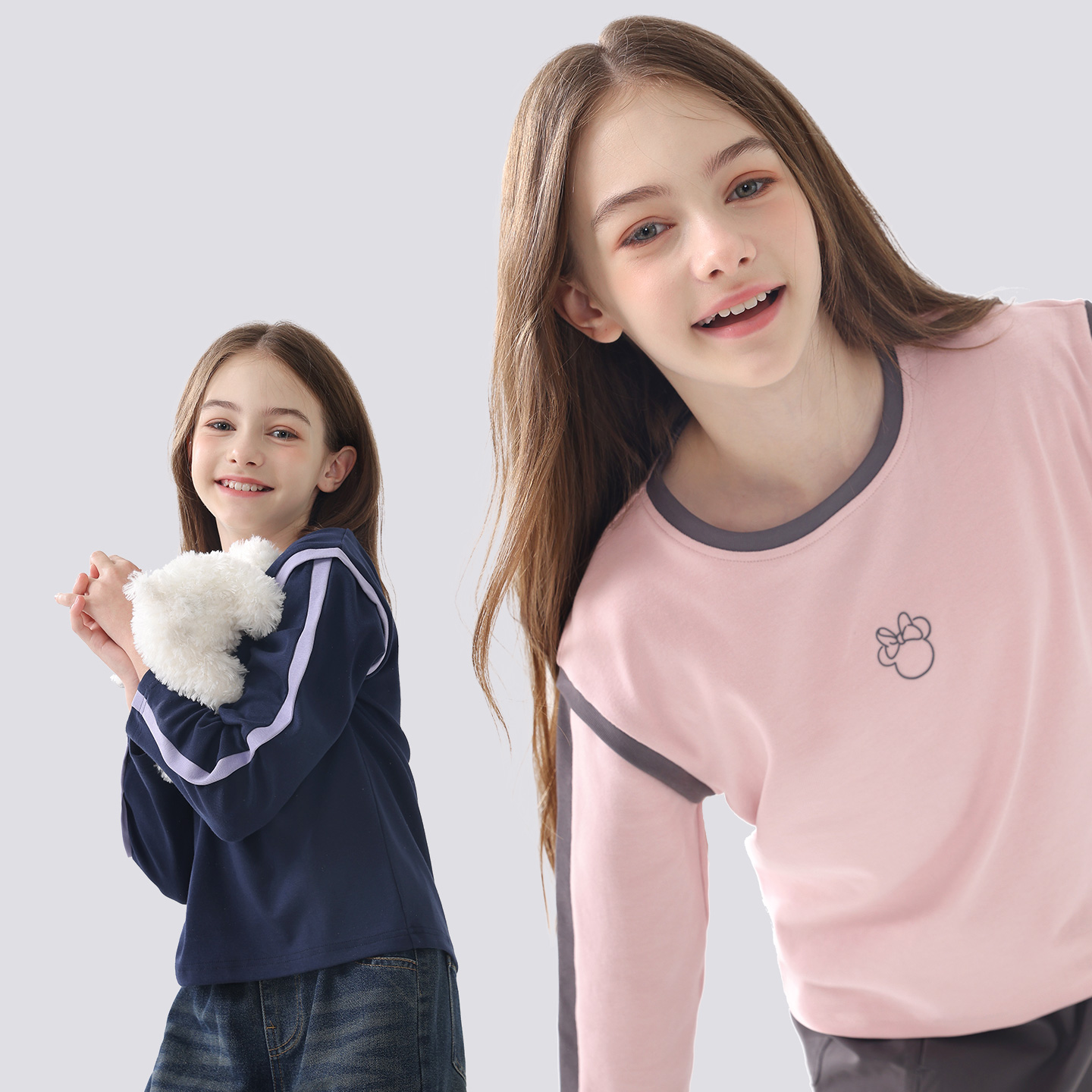 迪士尼女童T恤儿童长袖打底衫25新款秋装中大童洋气上衣春秋童装