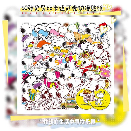50张卡通史努比贴纸行李箱手机壳手账笔记本文具盒饭卡头盔电瓶车高品质DIY装饰创意贴纸sticker精美贴纸画美